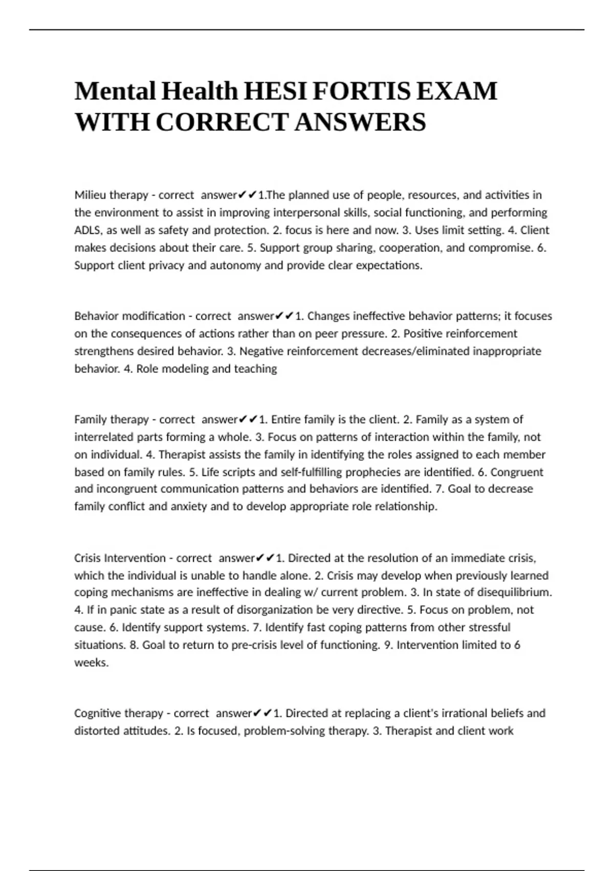 Mental Health HESI FORTIS EXAM WITH CORRECT ANSWERS