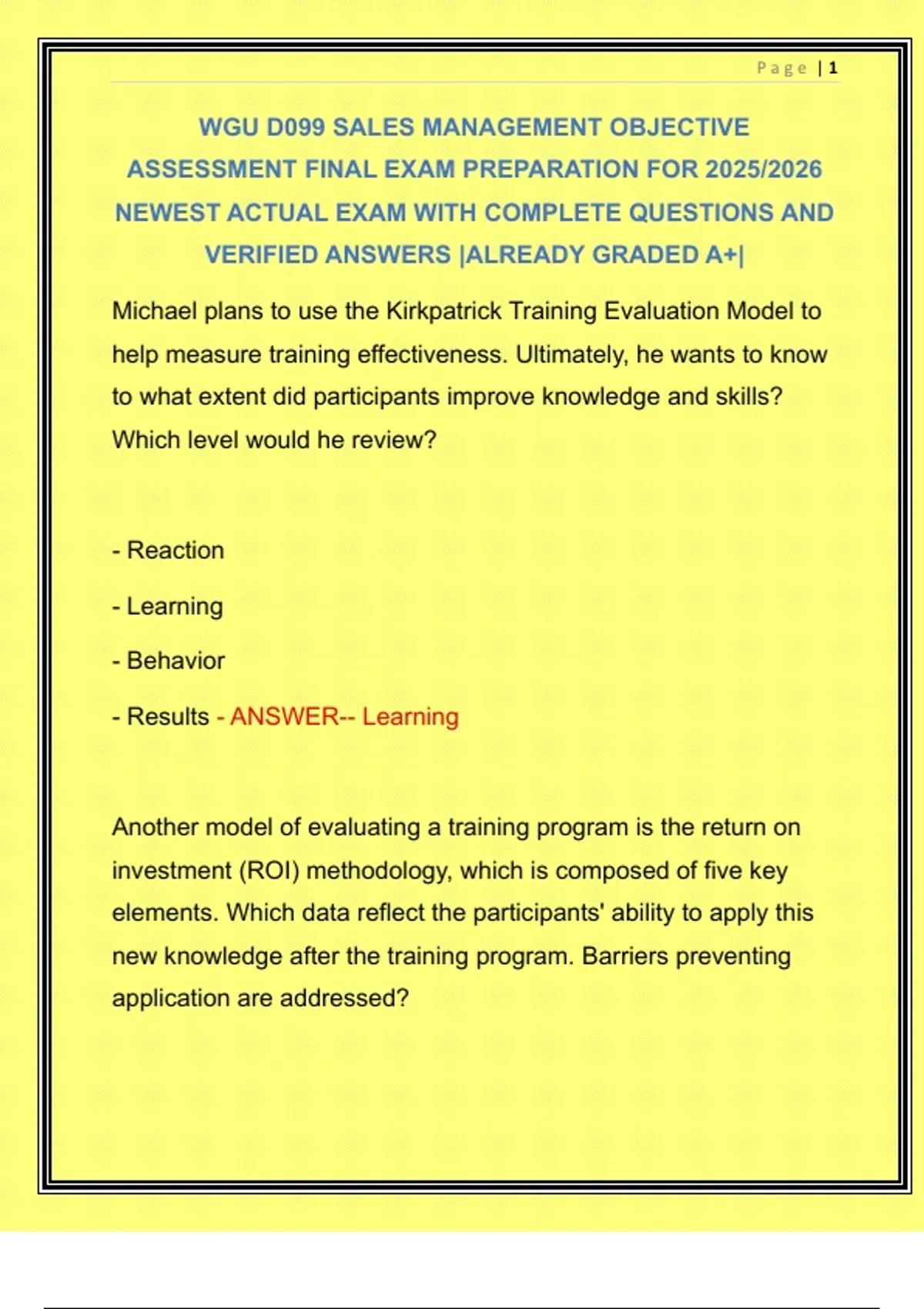 WGU D099 SALES MANAGEMENT OBJECTIVE