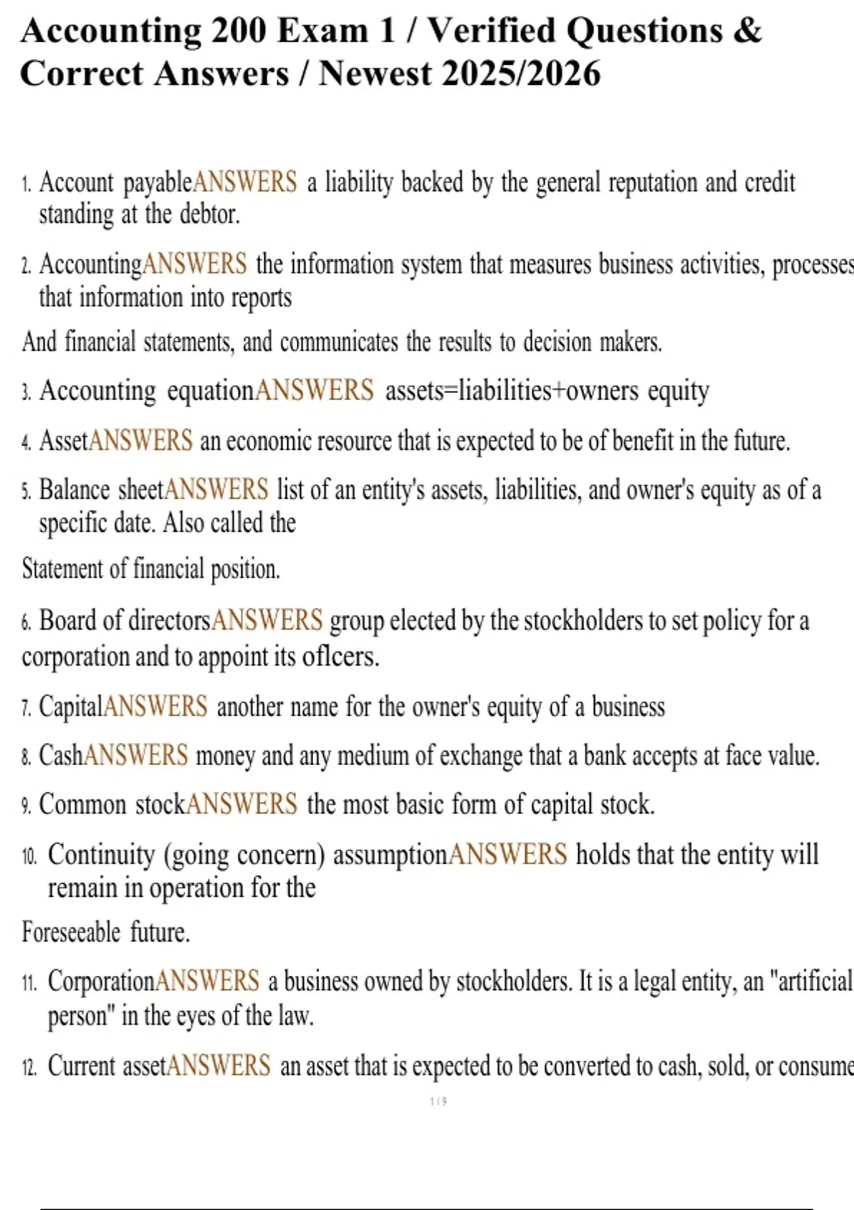 1. Account payableANSWERS a liability backed by the general reputation and credit