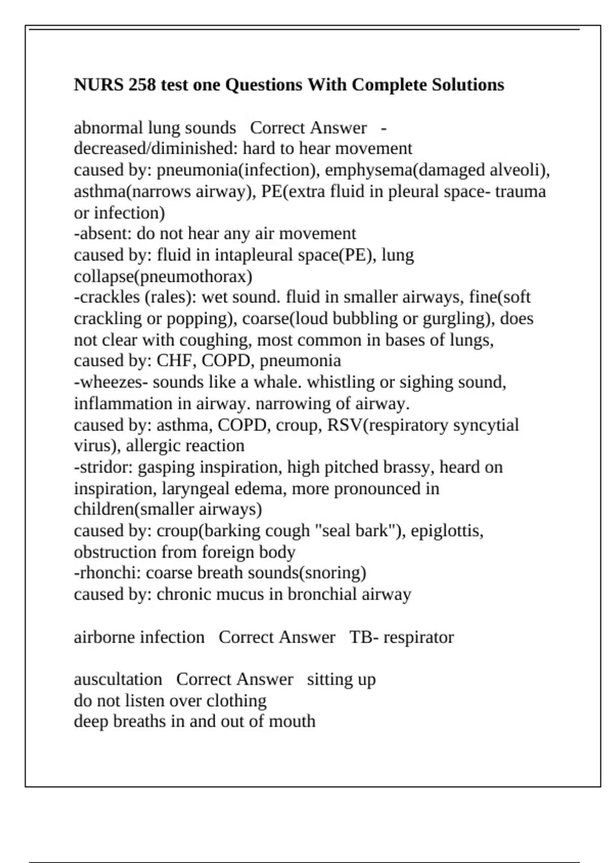 abnormal lung sounds Correct Answer -
