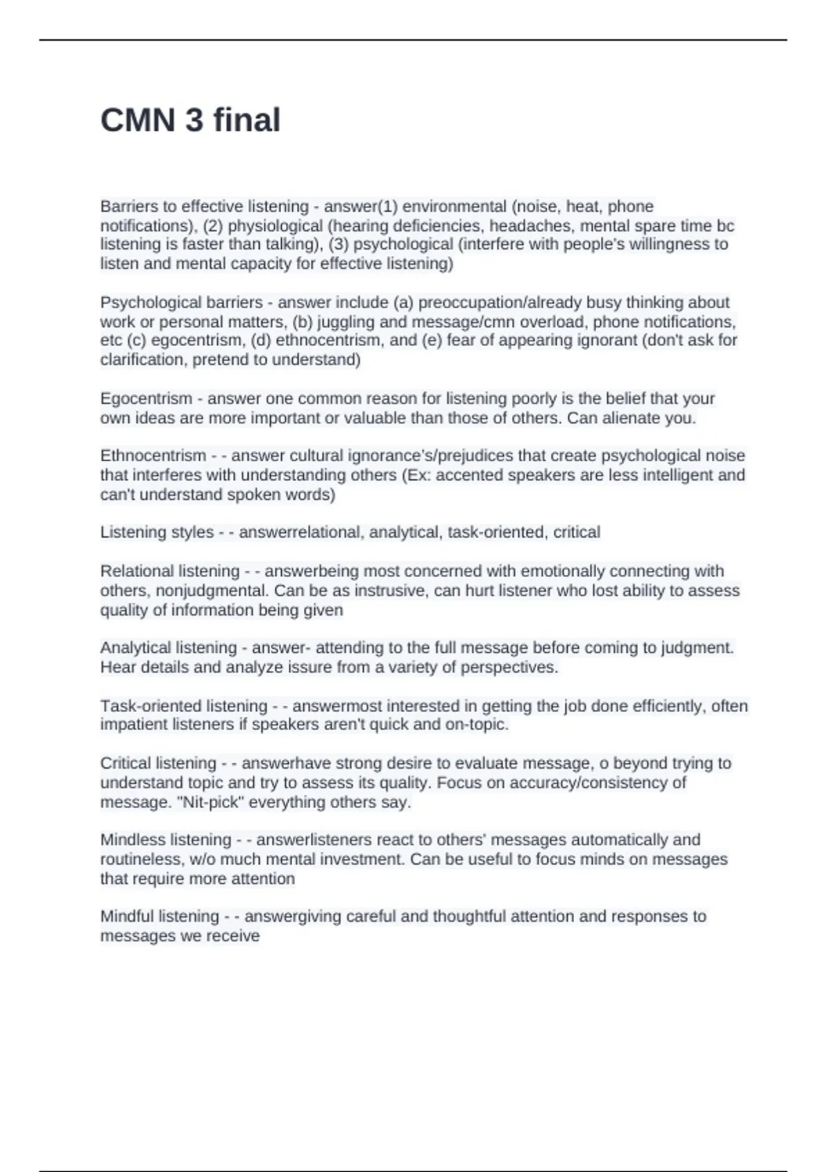 Critical listening - - answerhave strong desire to evaluate message, o beyond trying to
