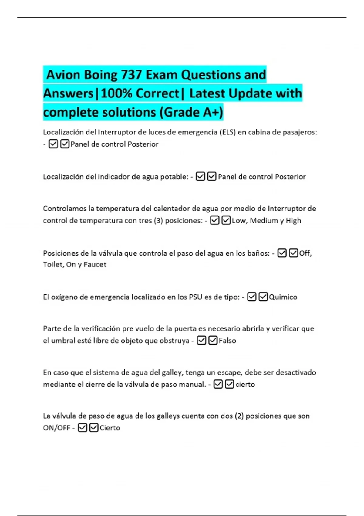 Avion Boing 737 Exam Questions and Answers|100% Correct| Latest Update with complete solutions (Grade A+)
