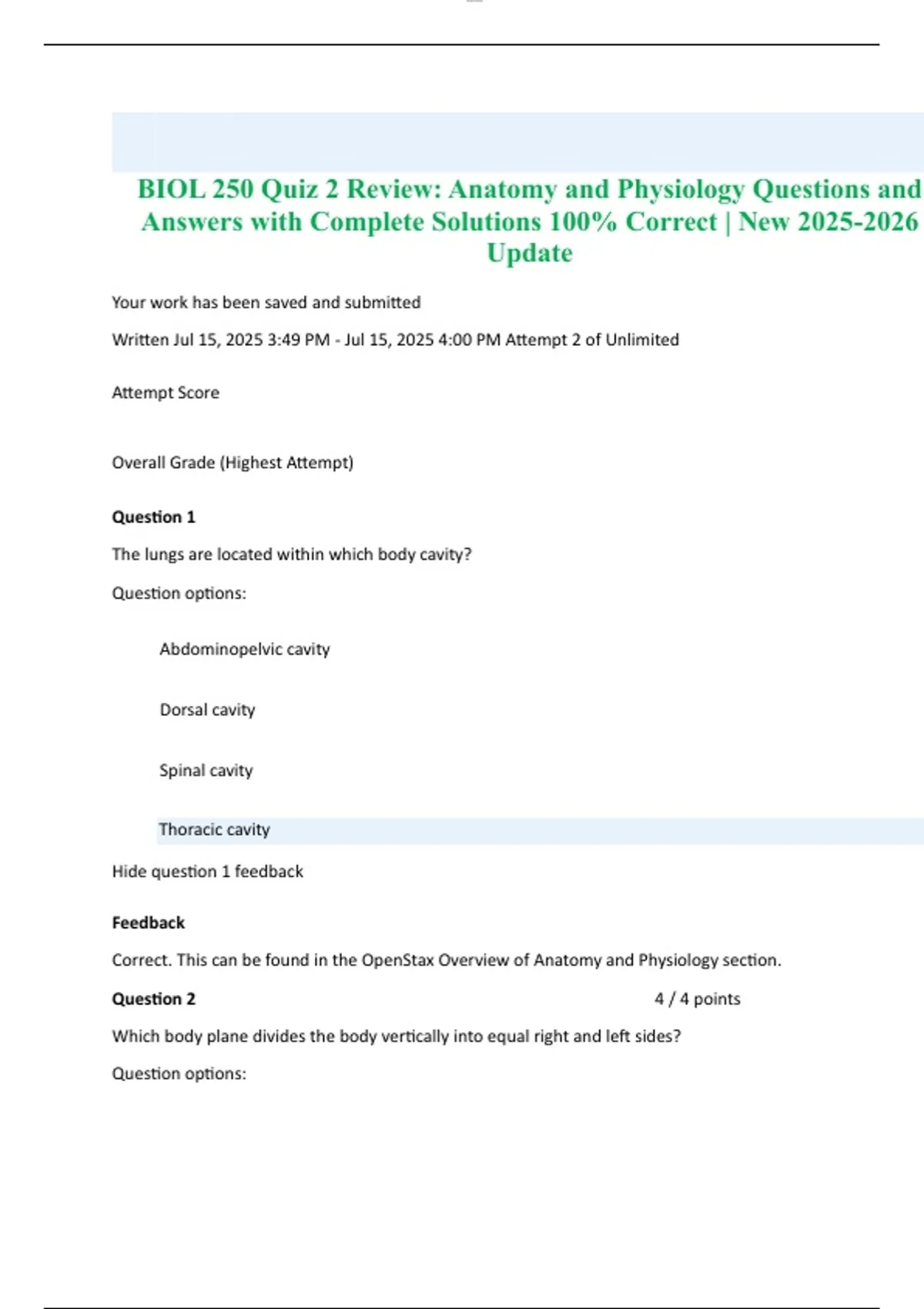 BIOL 250 Quiz 2 Review: Anatomy and Physiology Questions and