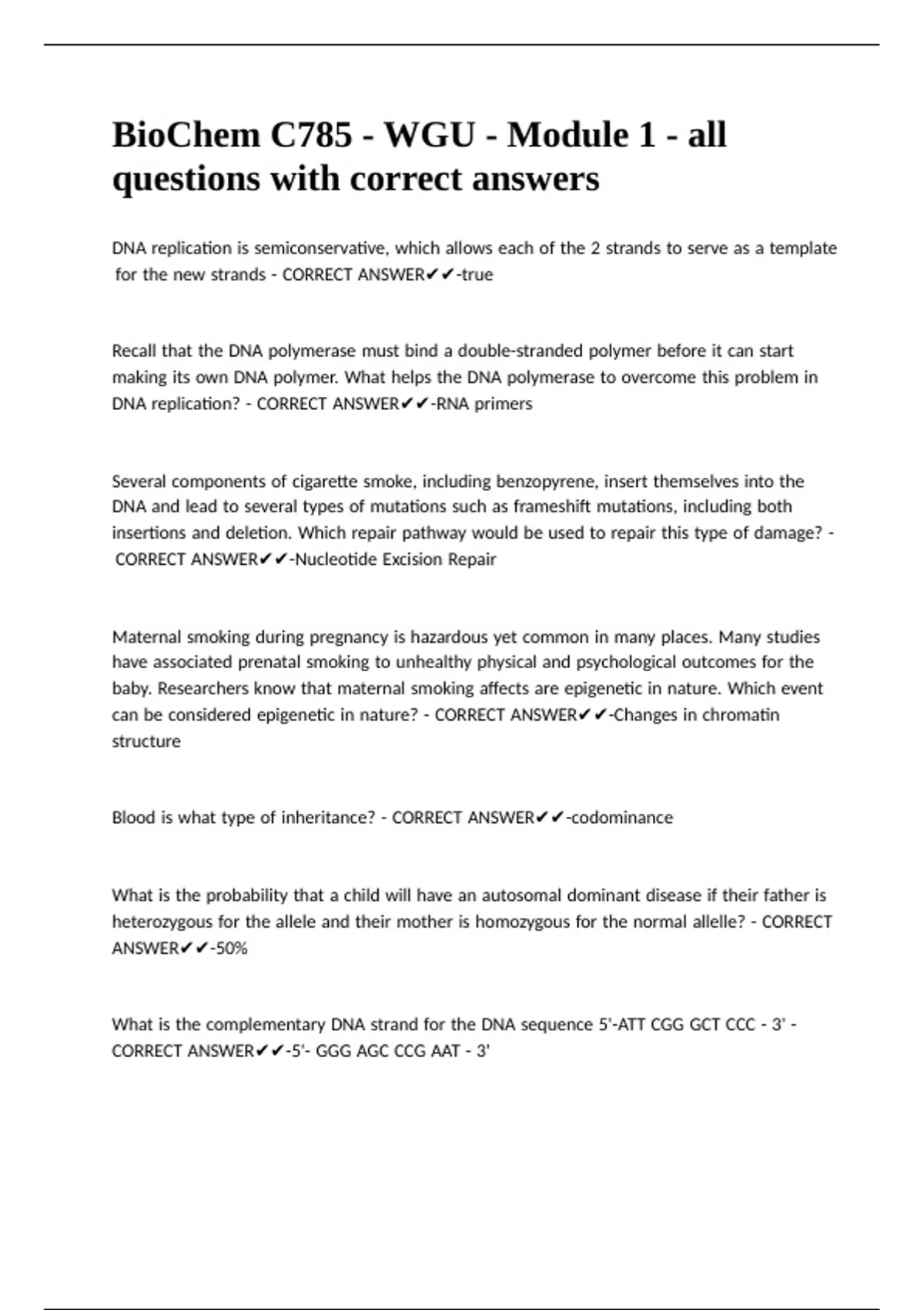 BioChem C785 - WGU - Module 1 - all questions with correct answers.