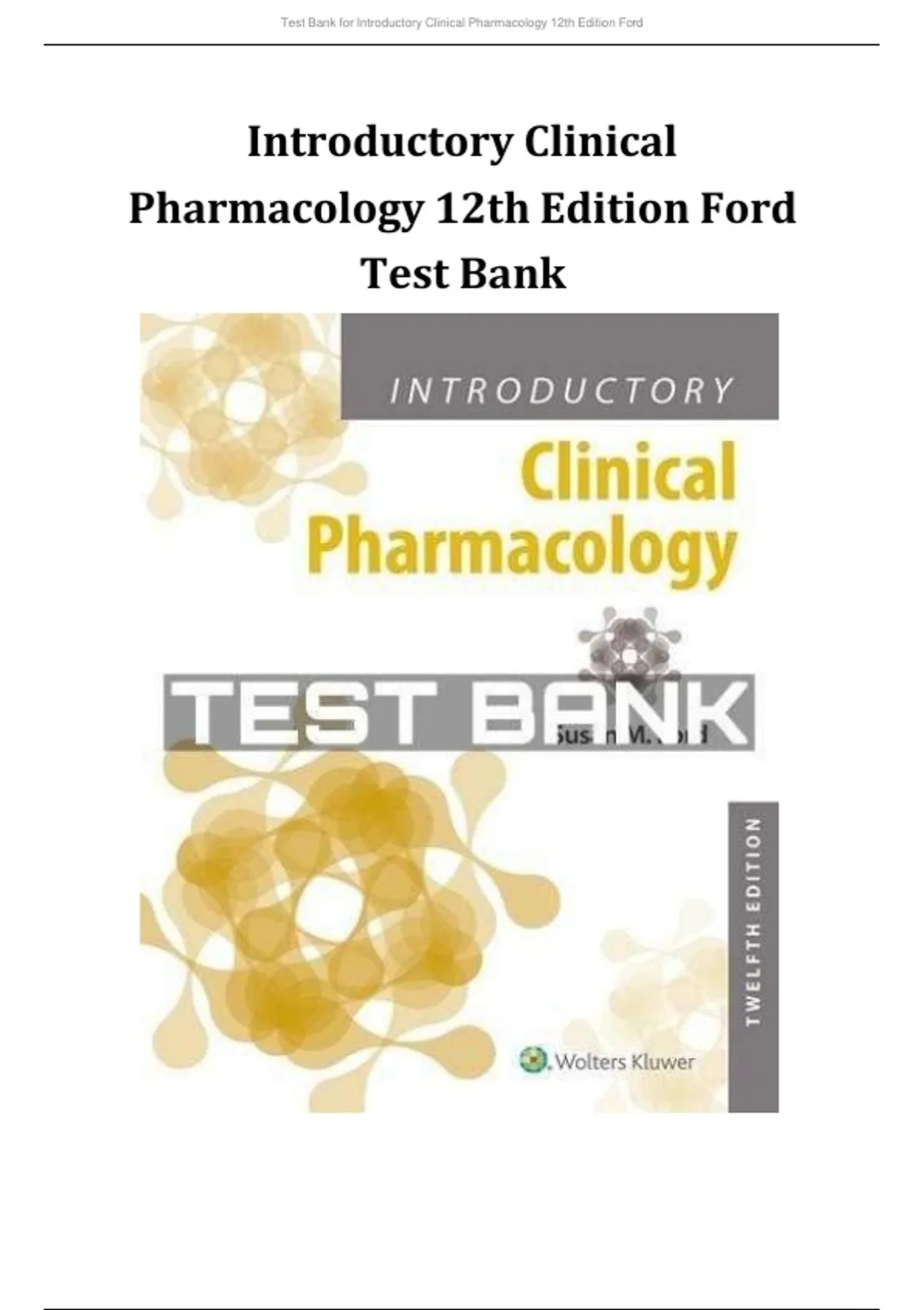 Introductory Clinical Pharmacology 12th Edition Ford Test Bank