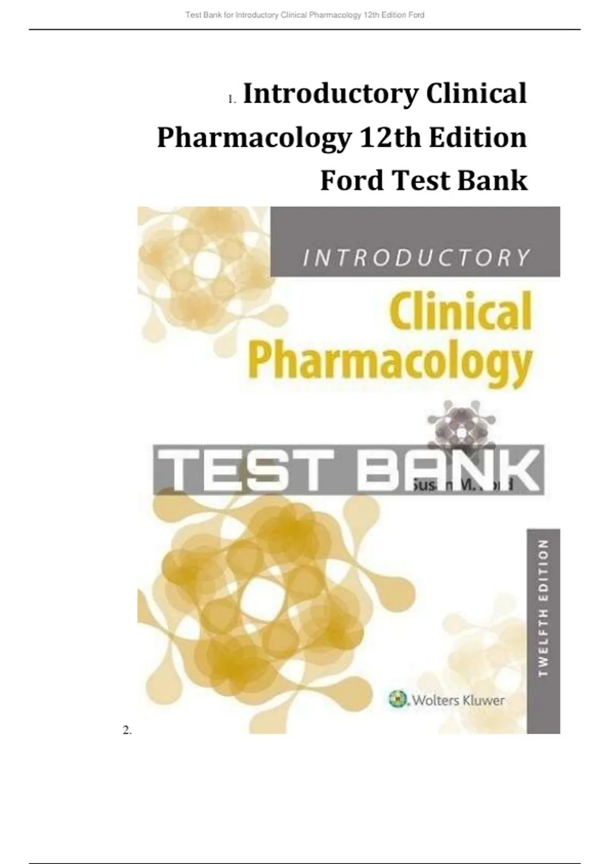 Test Bank for Introductory Clinical Pharmacology 12th Edition Ford