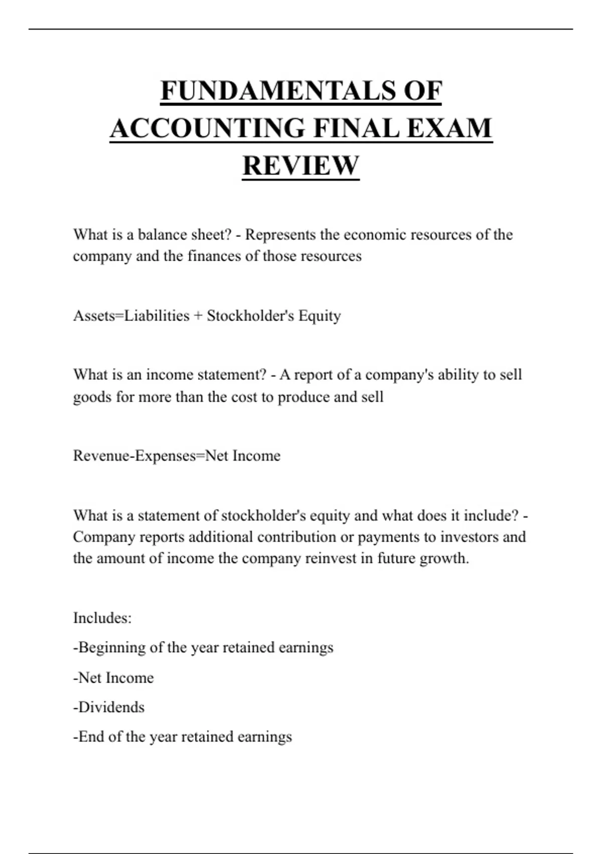 FUNDAMENTALS OF ACCOUNTING FINAL EXAM REVIEW QUESTIONS AND ANSWERS 2025