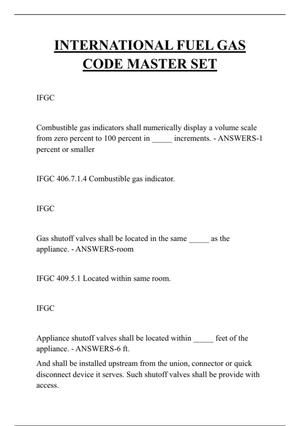INTERNATIONAL FUEL GAS CODE MASTER SET QUESTIONS AND ANSWERS 2025