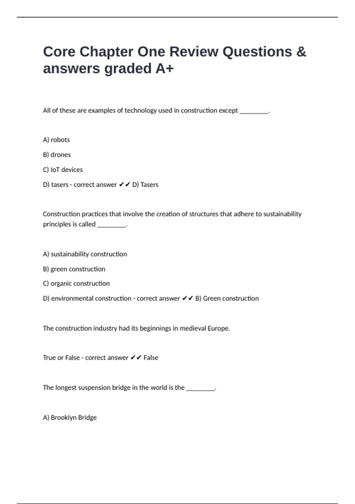 D) environmental construction - correct answer ✔✔ B) Green construction