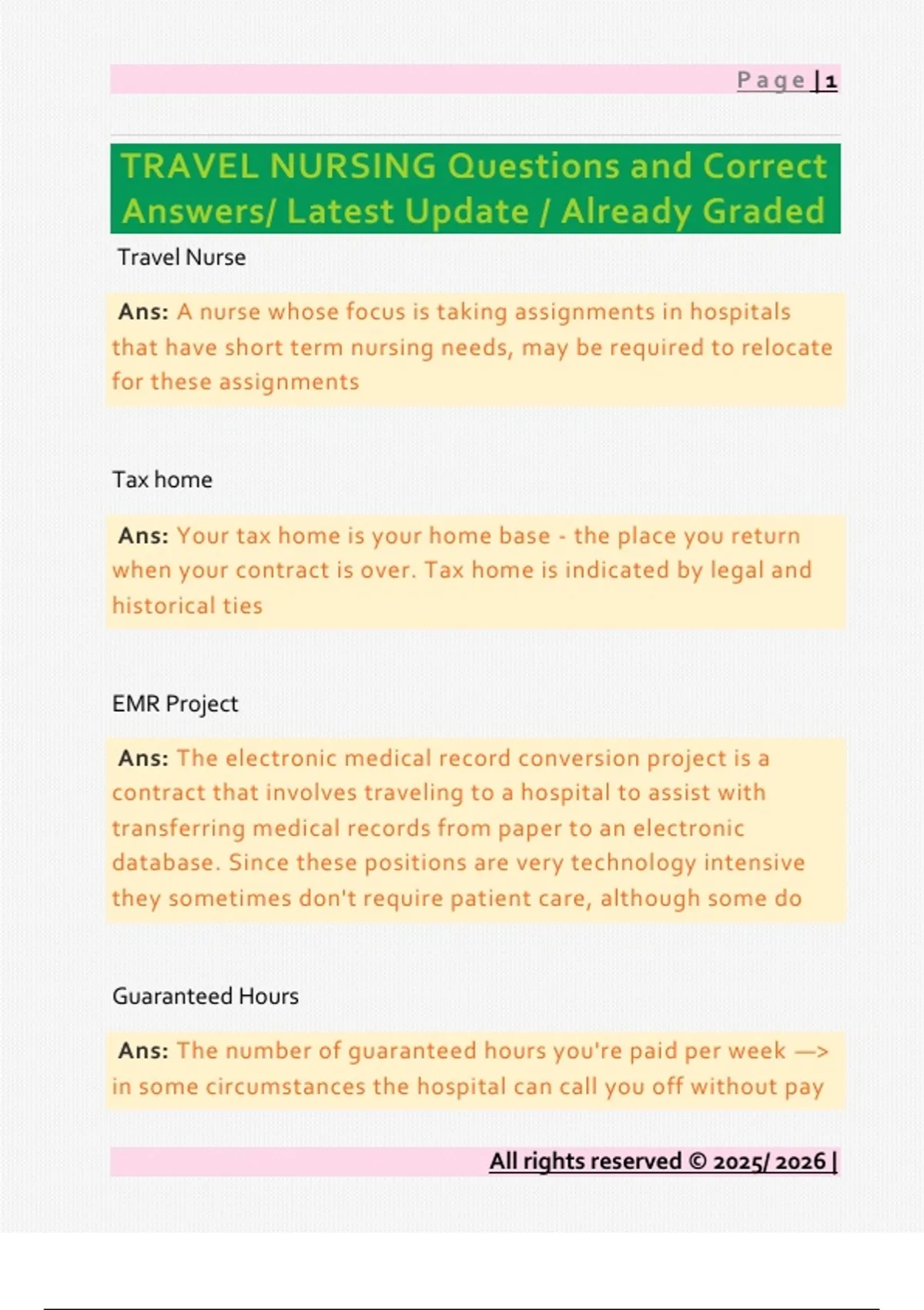 TRAVEL NURSING Questions and Correct