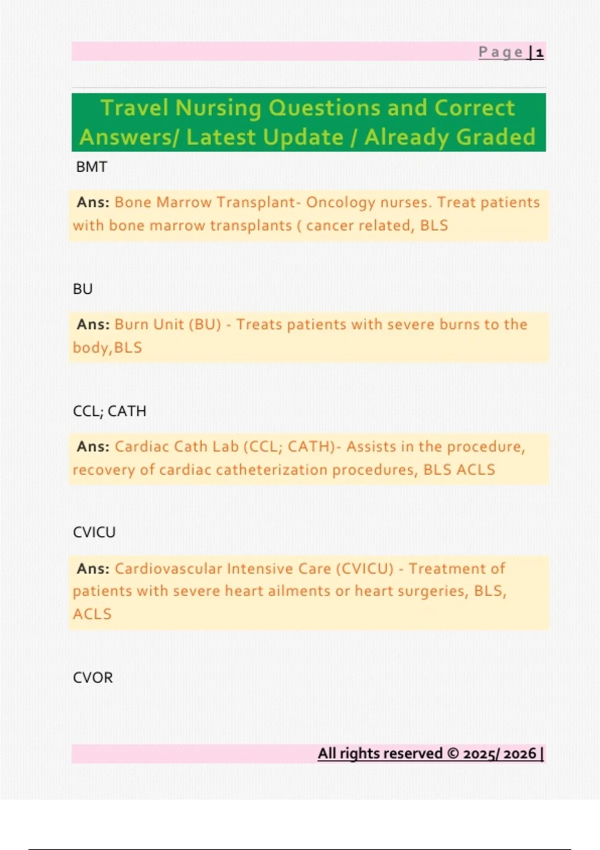 Travel Nursing Questions and Correct Answers/ Latest Update / Already Graded