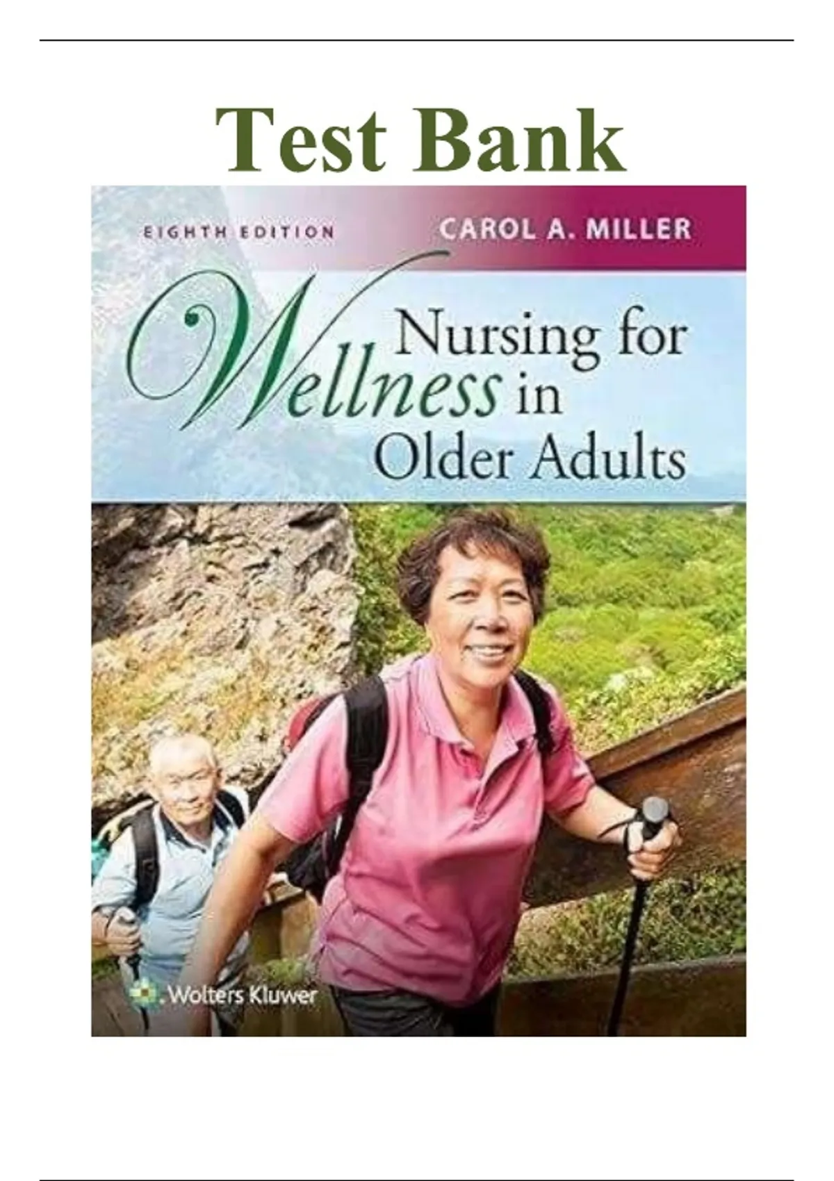 Test Bank For Nursing for Wellness in Older Adults 8th Edition by Carol A. Miller 8287, 2 , 8300, 4 1 Seeing Older Adults Through the Eyes of Wellness 2 Addressing Diversity of Older Adults 3 Applying a Nursing Model for Promoting Wellness in Older Adults 4 Theoretical Perspectives on Aging Well 5 Gerontological Nursing and Health Promotion 6 Health Care for Older Adults in Various Settings 7 Assessment of Health and Functioning 8 Medications and Other Bioactive Substances 9 Legal and Ethical Concerns 10 Elder Abuse and Neglect 11 Cognitive Wellness 12 Psychosocial Wellness 13 Psychosocial Assessment 14 Impaired Cognitive Function: Delirium and Dementia 15 Impaired Affective Function: Depression 16 Hearing 17 Vision 18 Digestion and Nutrition 20 Cardiovascular Function 21 Respiratory Function 22 Safe Mobility 23 Integumentary Function 24 Sleep and Rest 25 Thermoregulation 26 Sexual Function 27 Caring for Older Adults During Illness 28 Caring for Older Adults Experiencing Pain 29 Caring for Older Adults at the End of Life