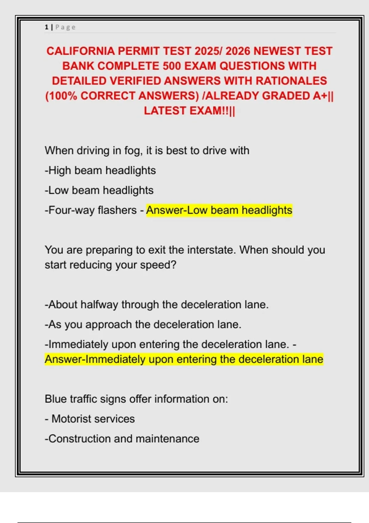 CALIFORNIA PERMIT TEST 2025/ 2026 NEWEST TEST