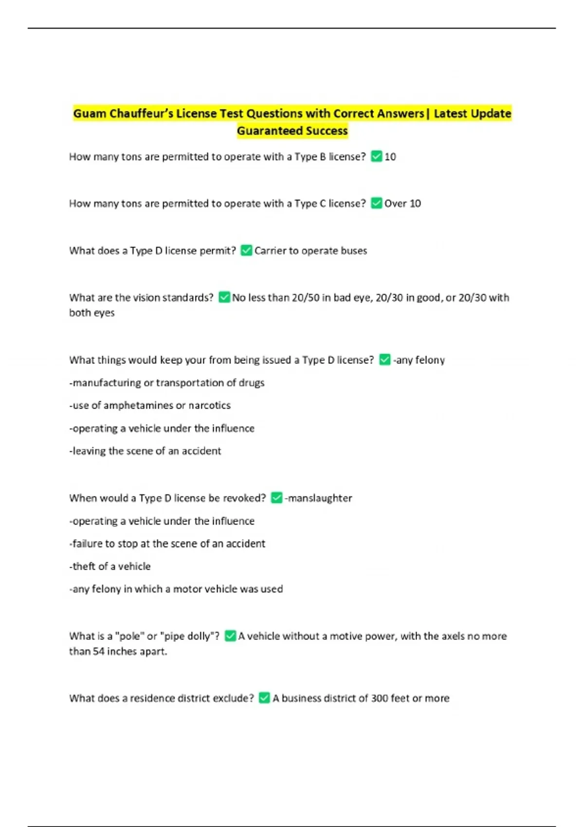 Guam Chauffeur’s License Test Questions with Correct Answers| Latest Update Guaranteed Success