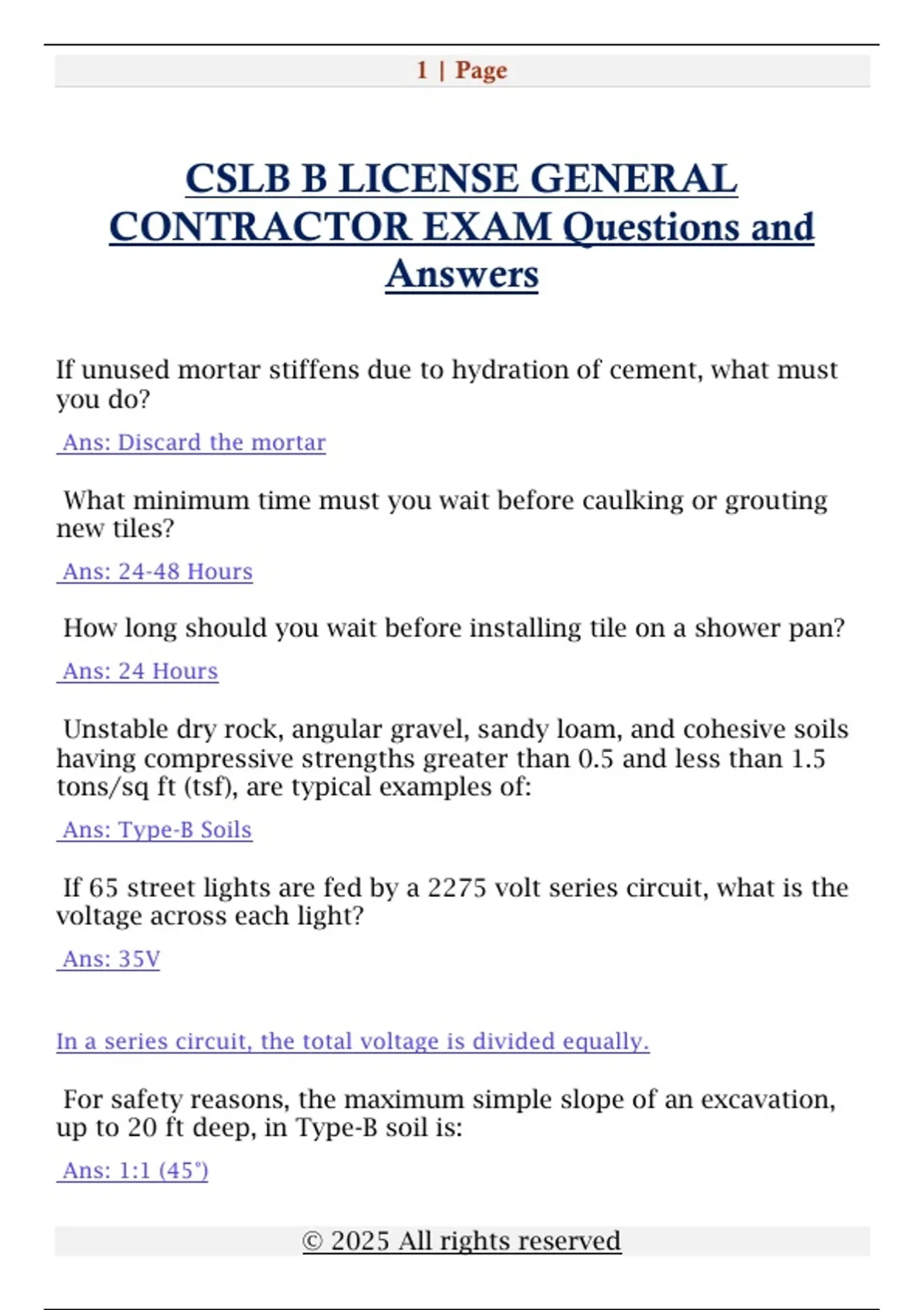 CSLB B LICENSE GENERAL CONTRACTOR EXAM Questions and Answers