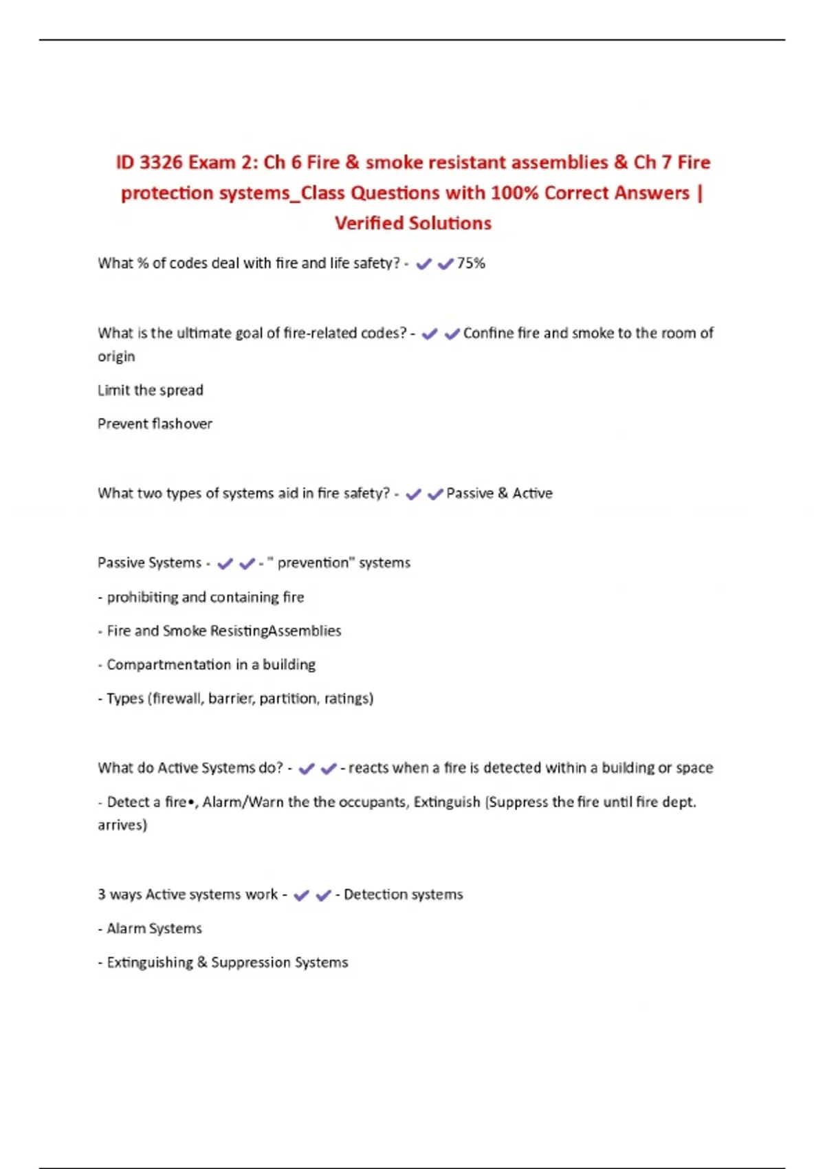 ID 3326 Exam 2: Ch 6 Fire & smoke resistant assemblies & Ch 7 Fire protection systems_Class Questions with 100% Correct Answers | Verified Solutions