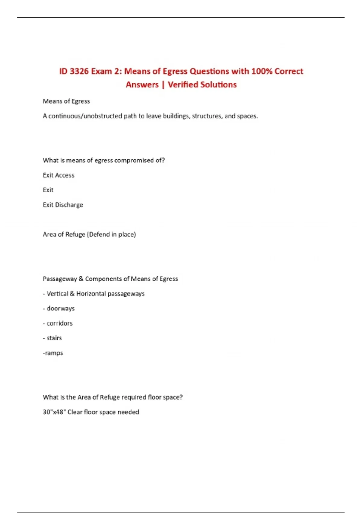 ID 3326 Exam 2: Means of Egress Questions with 100% Correct Answers | Verified Solutions