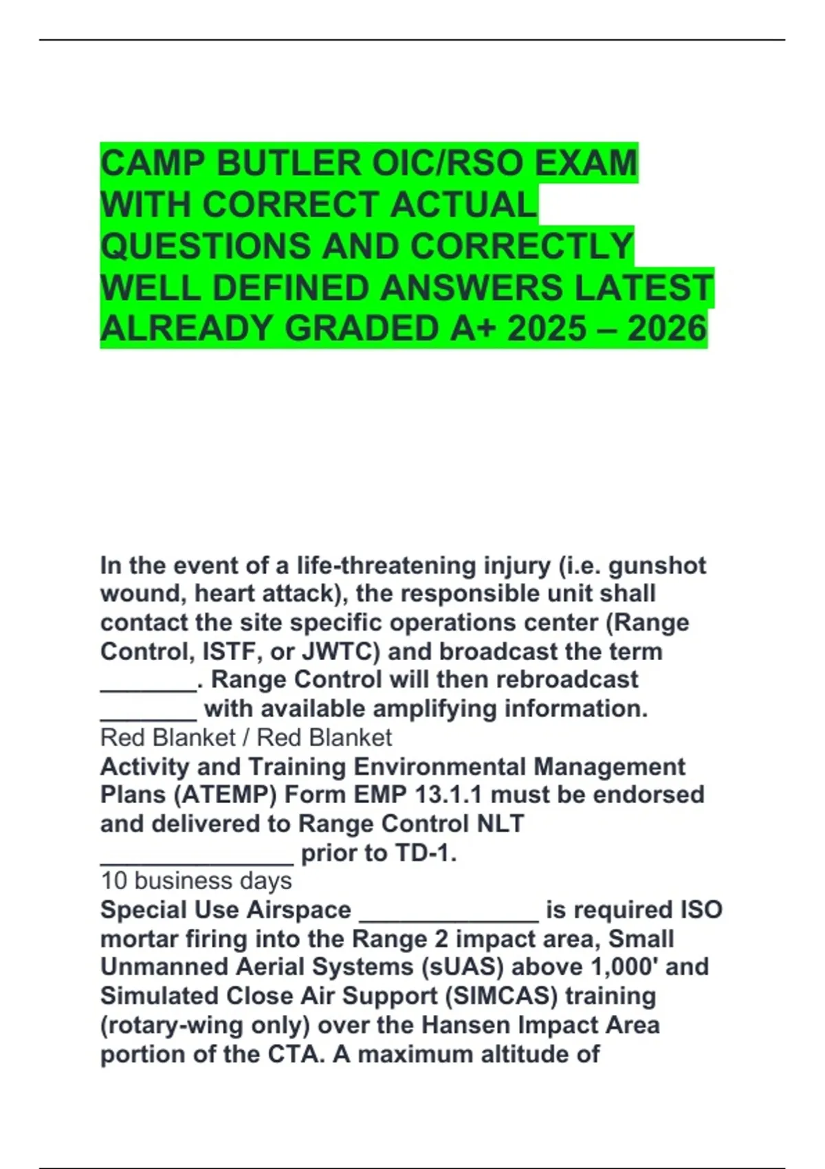 CAMP BUTLER OIC/RSO EXAM WITH CORRECT ACTUAL QUESTIONS AND CORRECTLY WELL DEFINED ANSWERS LATEST ALREADY GRADED A+ 2025 – 2026