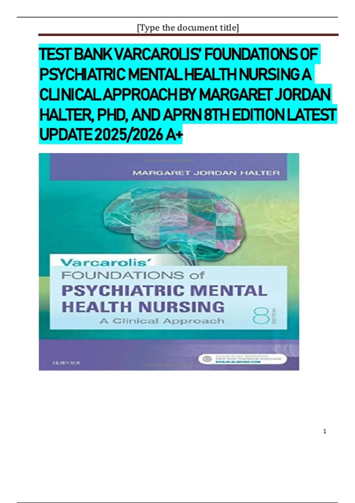 TEST BANK VARCAROLIS’ FOUNDATIONS OF PSYCHIATRIC MENTAL HEALTH NURSING A CLINICAL APPROACH BY MARGARET JORDAN HALTER, PHD, AND APRN 8TH EDITION LATEST UPDATE 2025/2026 A+