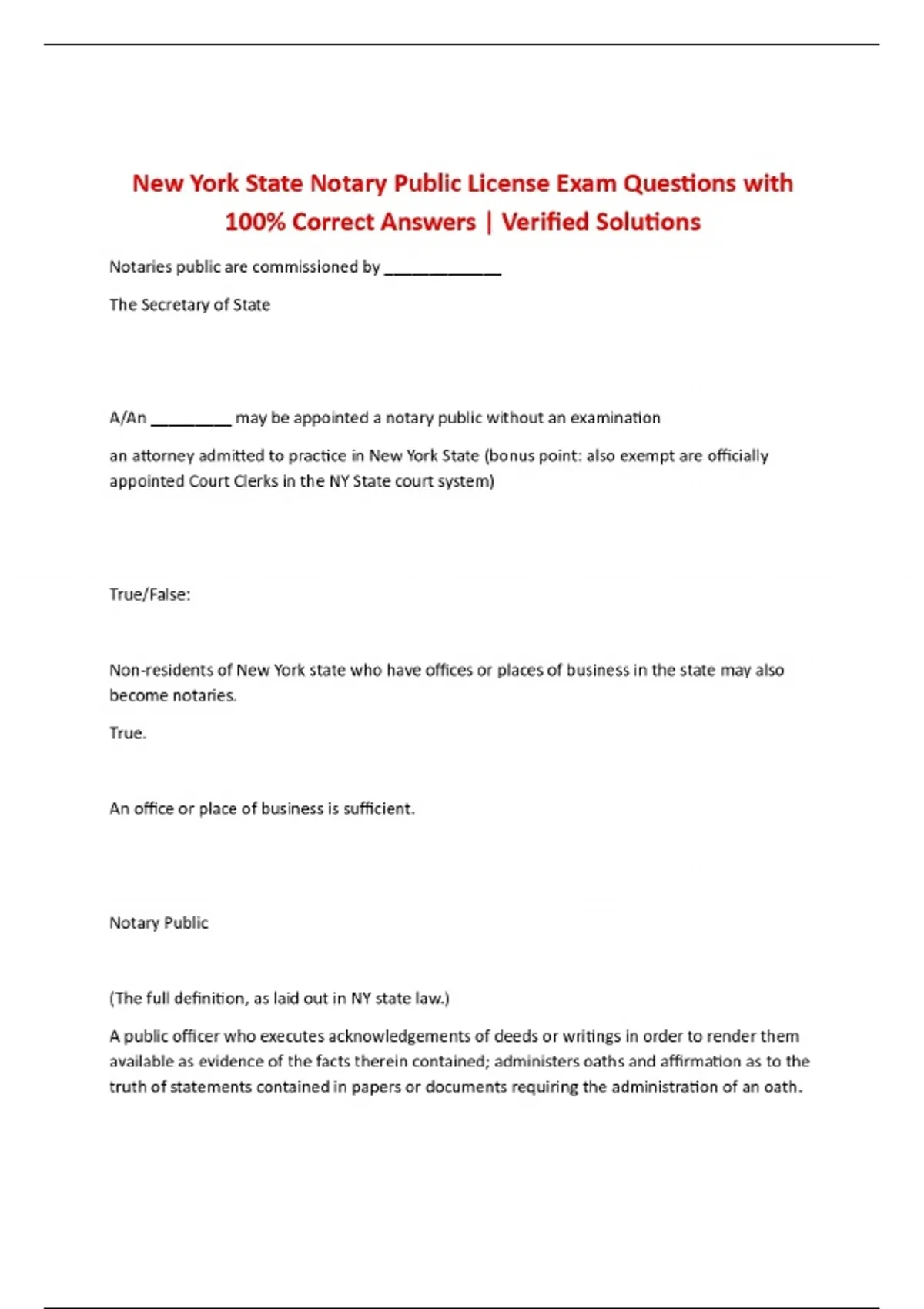 New York State Notary Public License Exam Questions with 100% Correct Answers | Verified Solutions