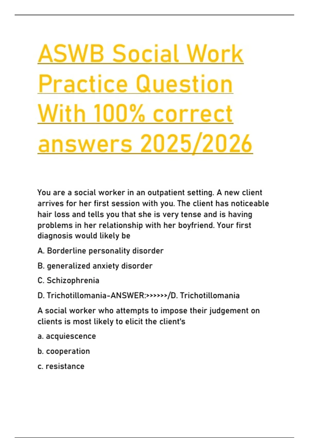 ASWB Social Work Practice Question With 100% correct answers 2025/2026