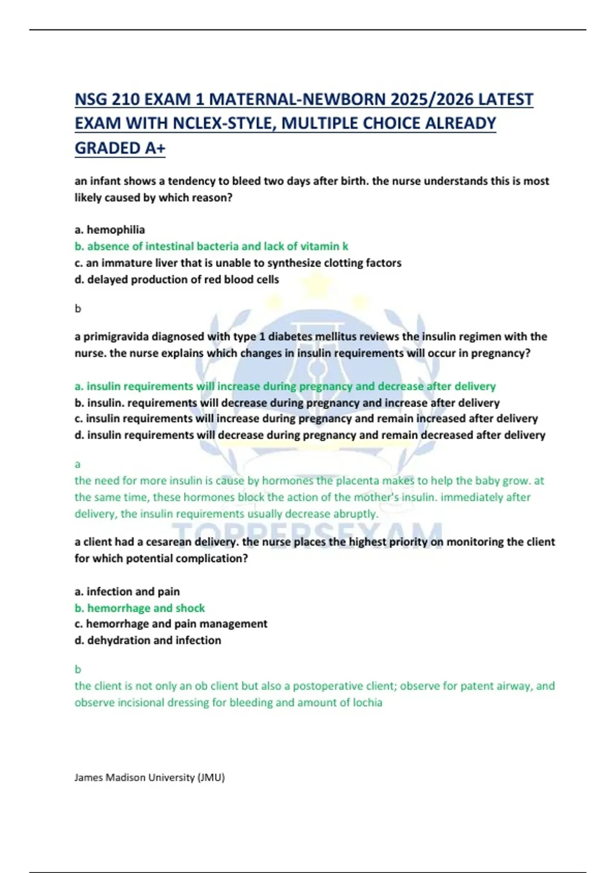 NSG 210 EXAM 1 MATERNAL-NEWBORN 2025/2026 LATEST