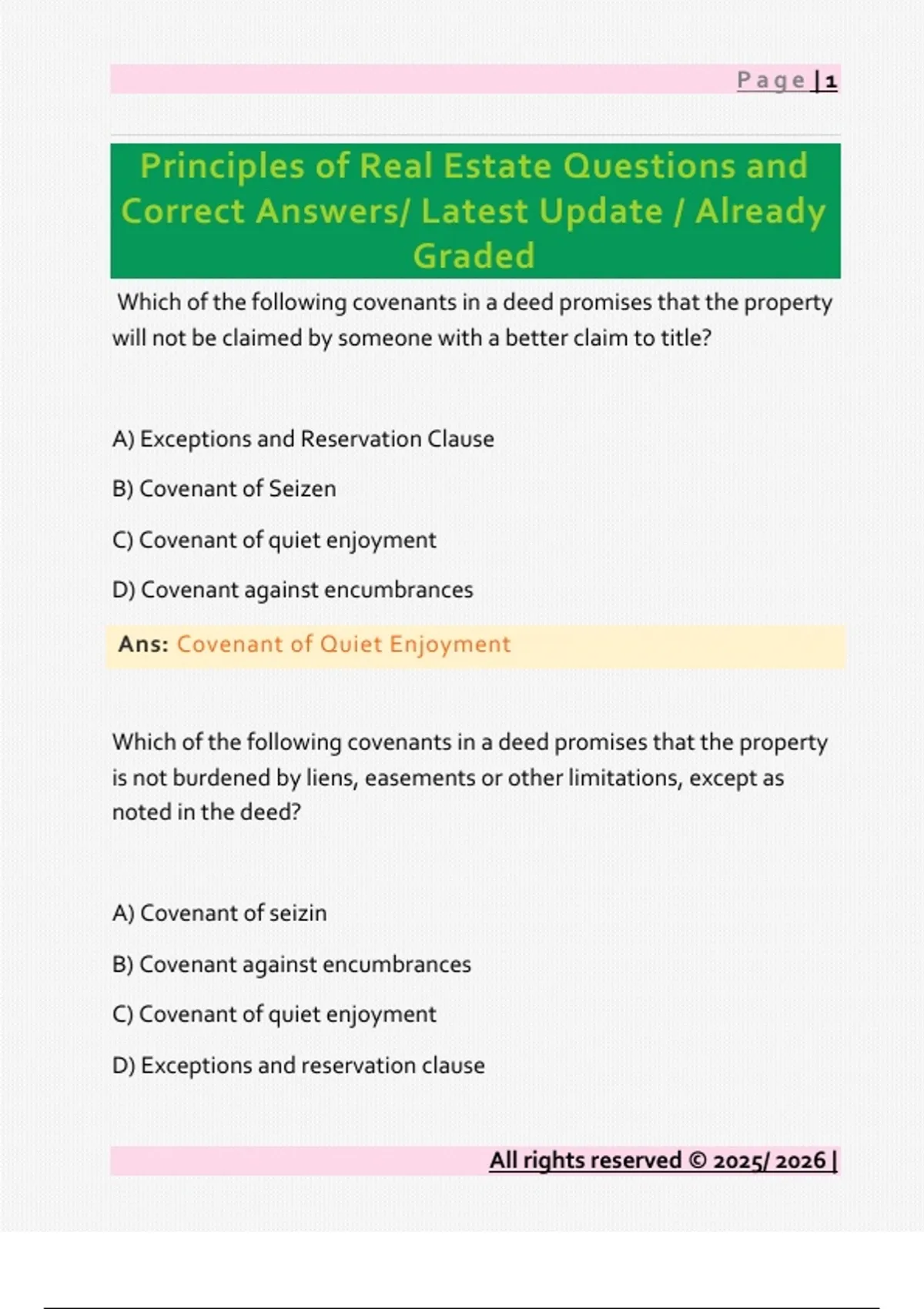 Ans: Covenant of Quiet Enjoyment