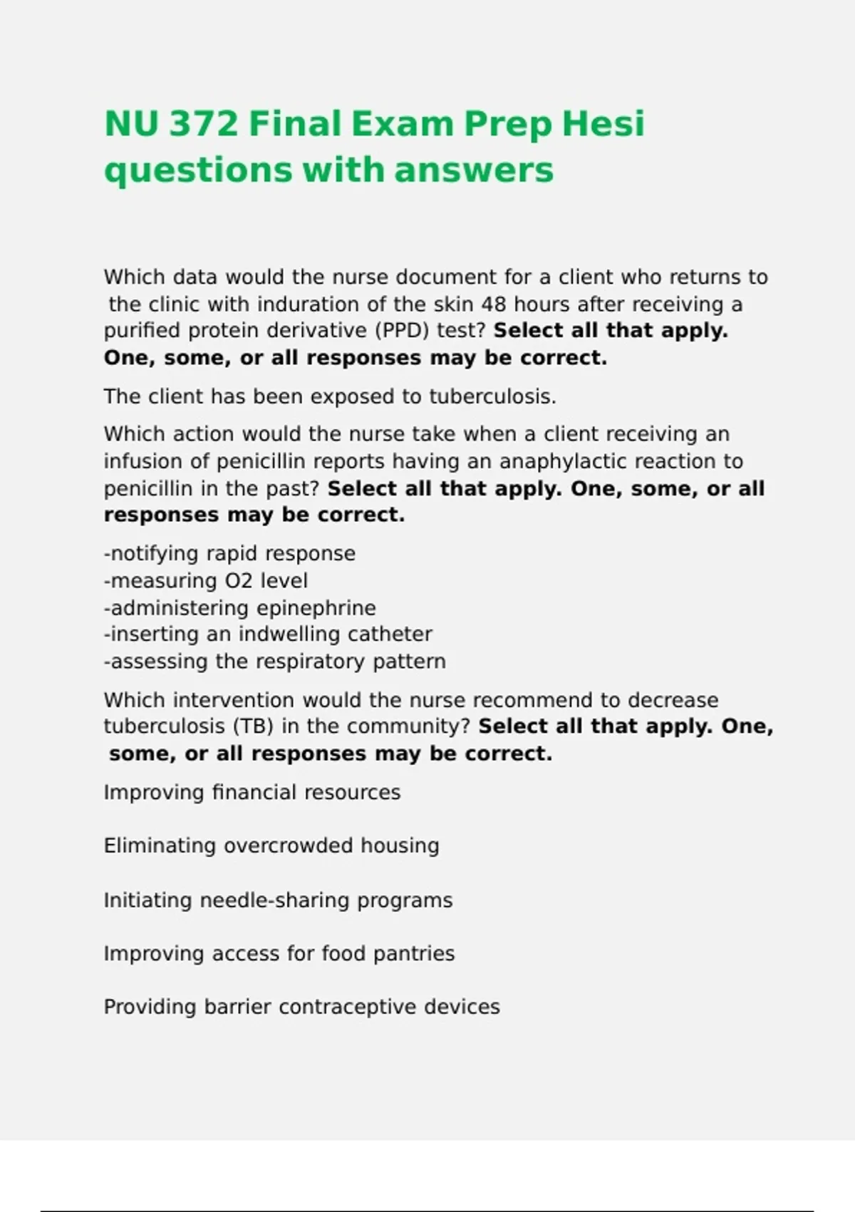 NU 372 Final Exam Prep Hesi questions with answers