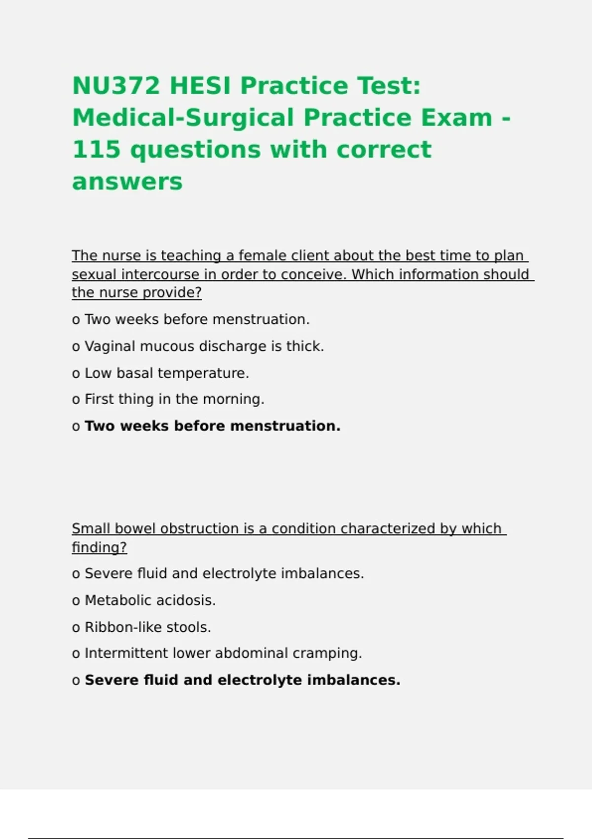 NU372 HESI Practice Test Medical-Surgical Practice Exam - 115 questions with correct answers