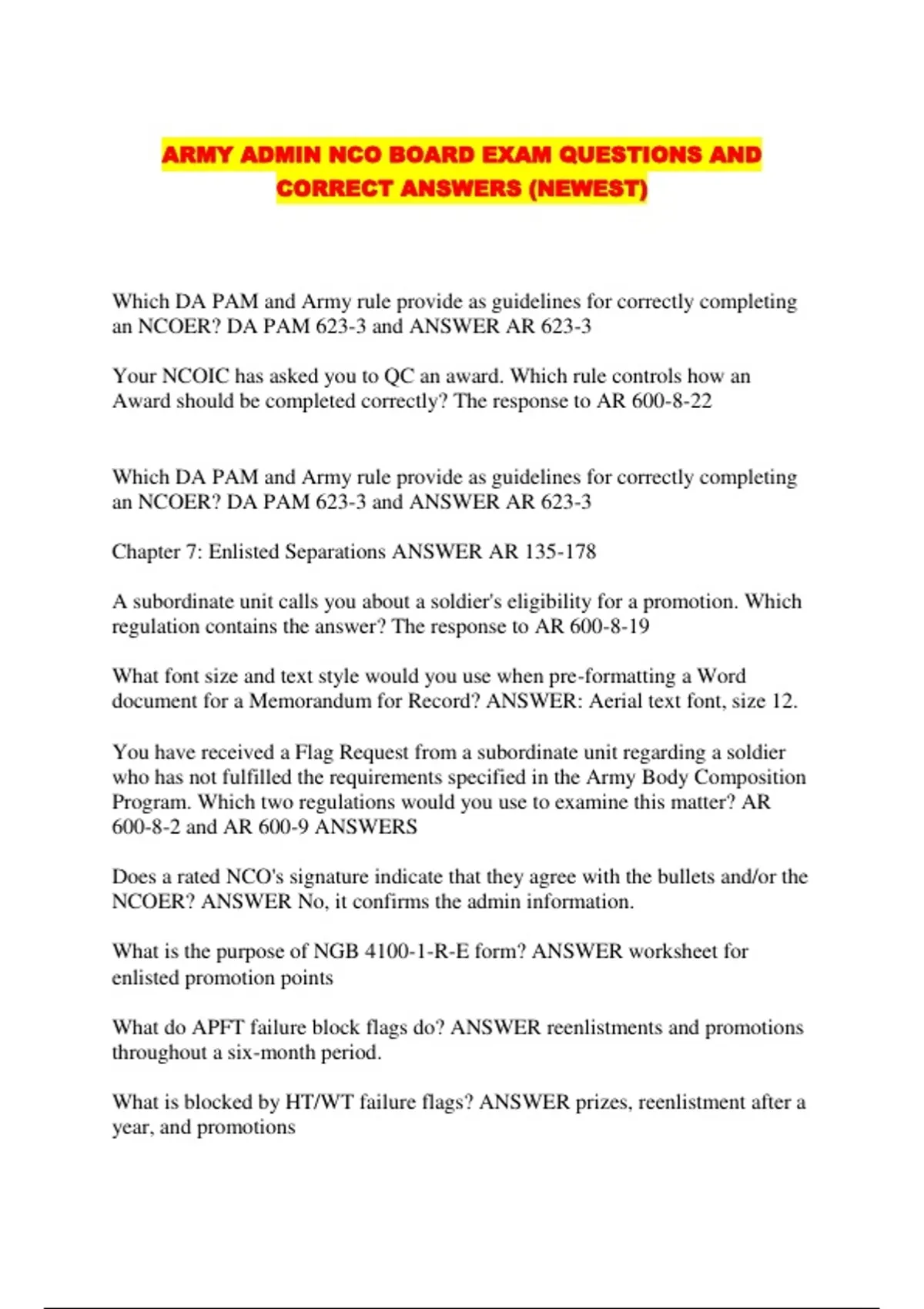ARMY ADMIN NCO BOARD EXAM QUESTIONS AND