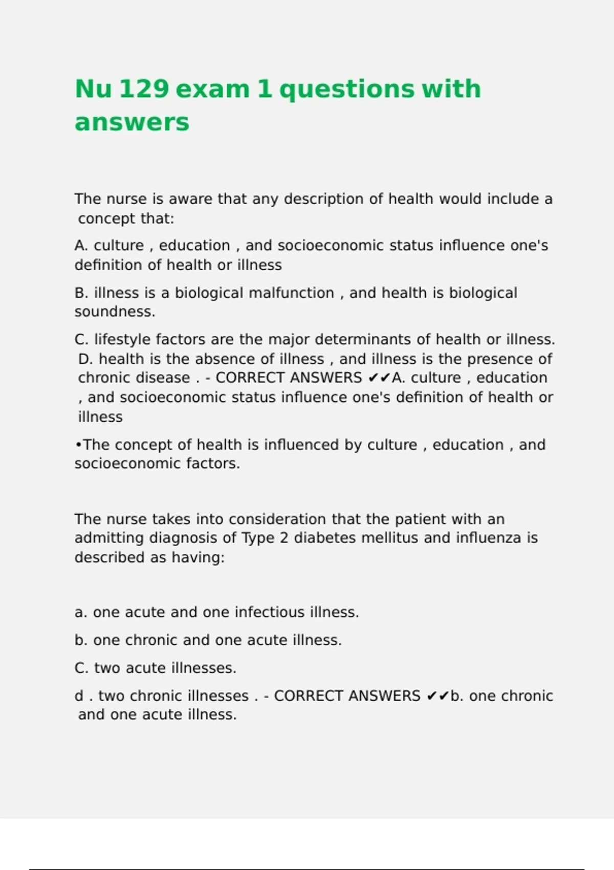 Nu 129 exam 1 questions with |\ |\ |\ |\ |\ |\