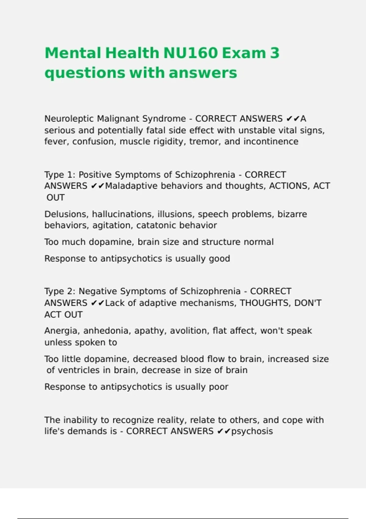 life's demands is - CORRECT ANSWERS ✔✔psychosis