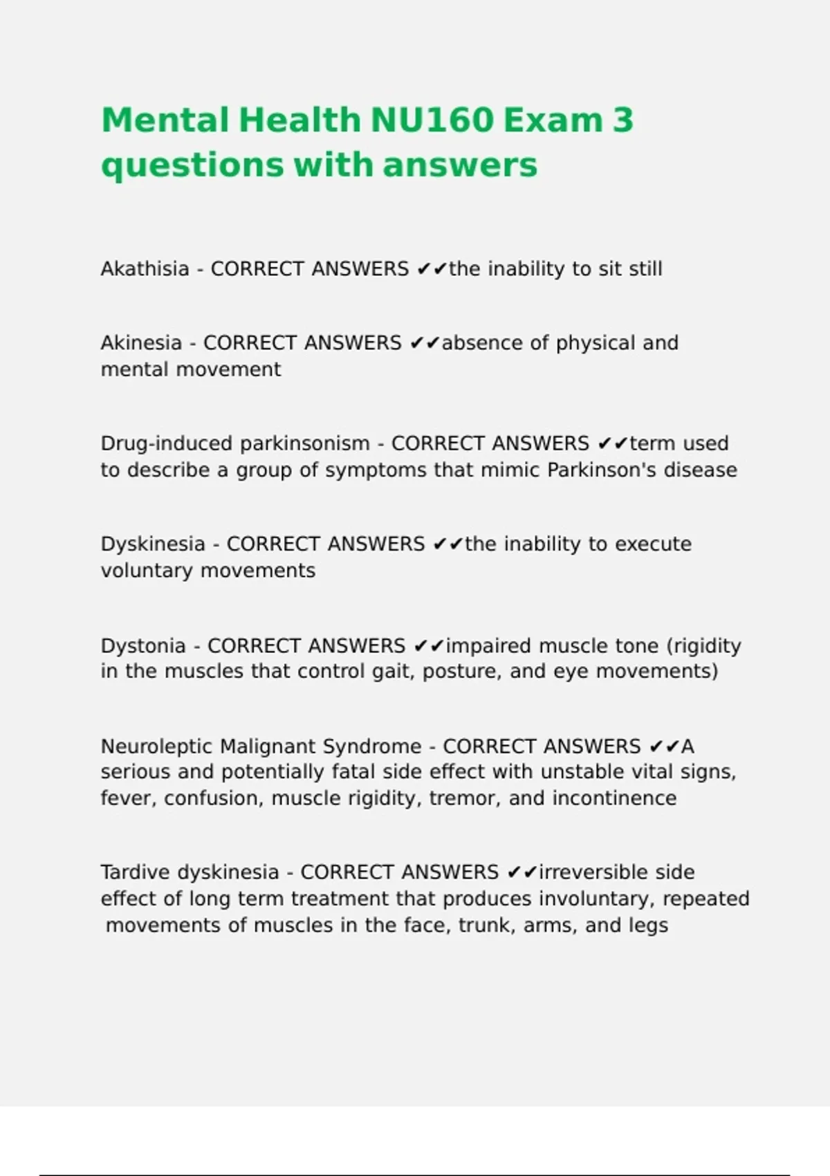 Mental Health NU160 Exam 3 |\ |\ |\ |\ |\