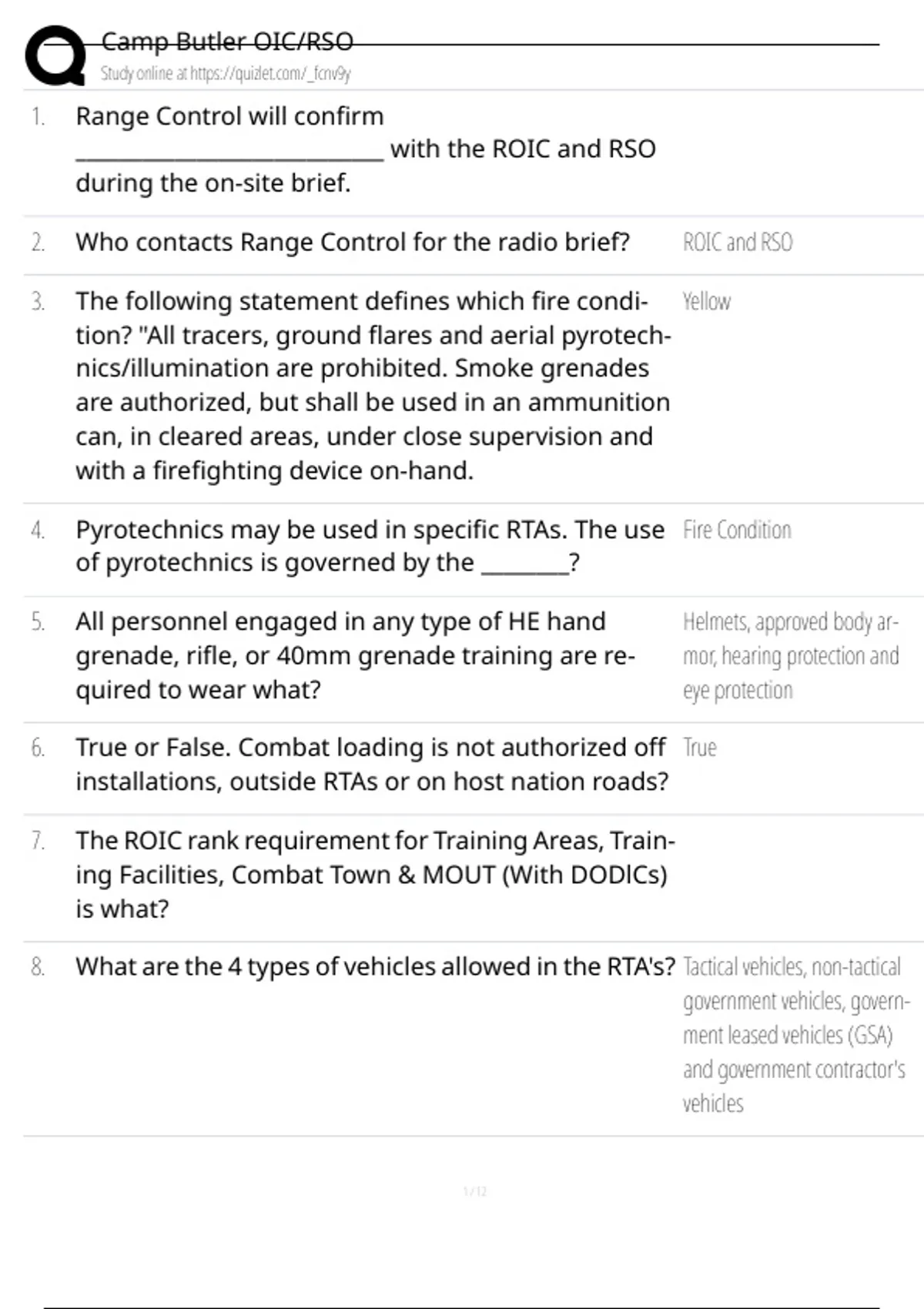 6. True or False. Combat loading is not authorized off True