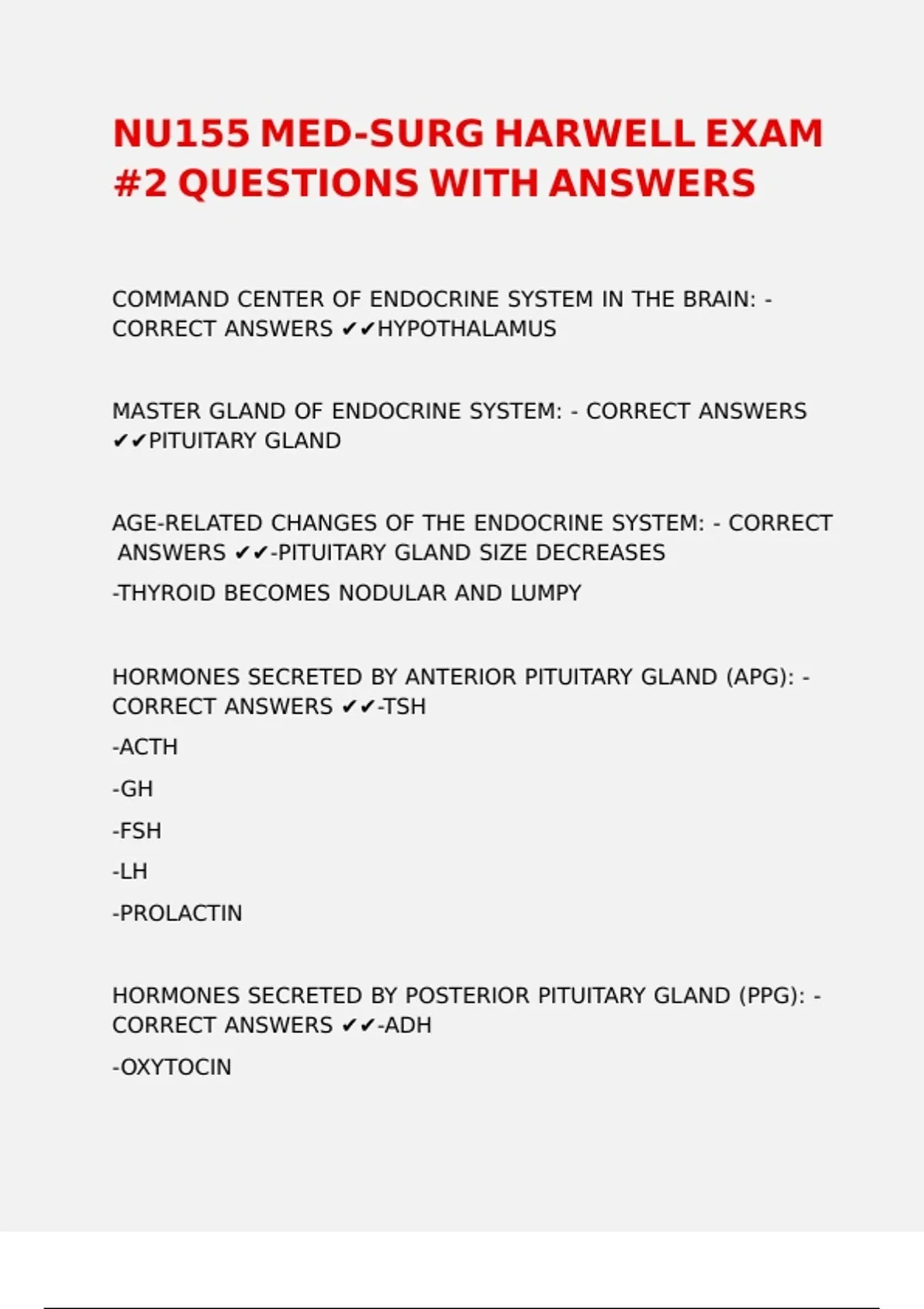 ANSWERS ✔✔-PITUITARY GLAND SIZE DECREASES