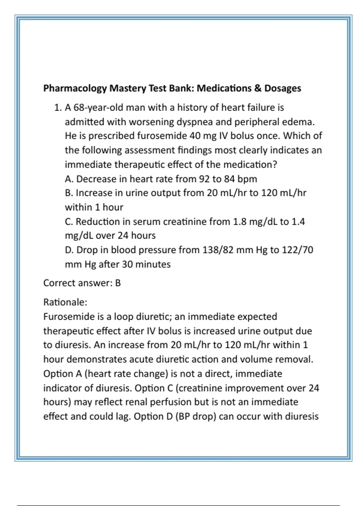 Pharmacology Mastery Test Bank: Medications & Dosages