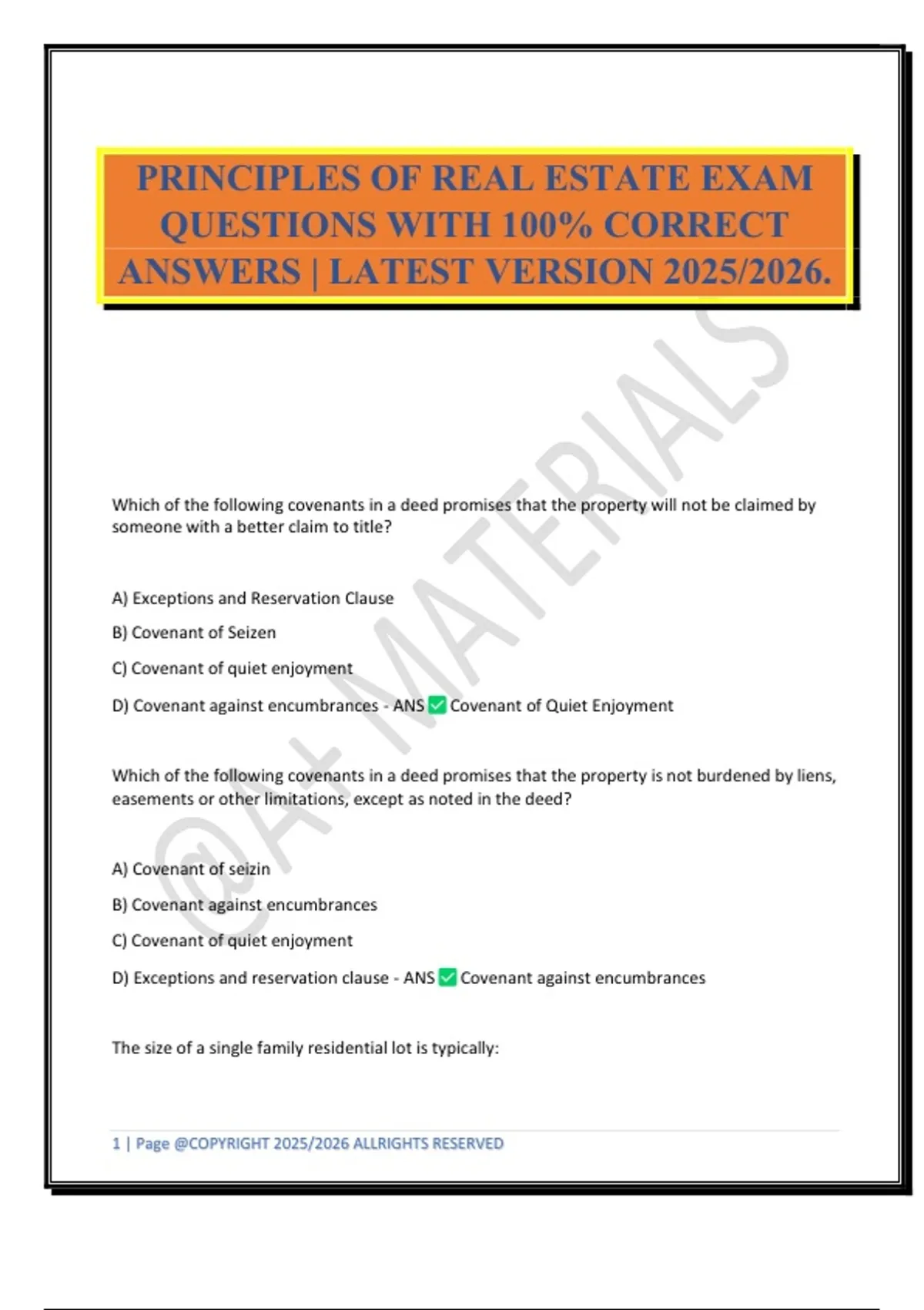 PRINCIPLES OF REAL ESTATE EXAM QUESTIONS WITH 100% CORRECT ANSWERS | LATEST VERSION 2025/2026.