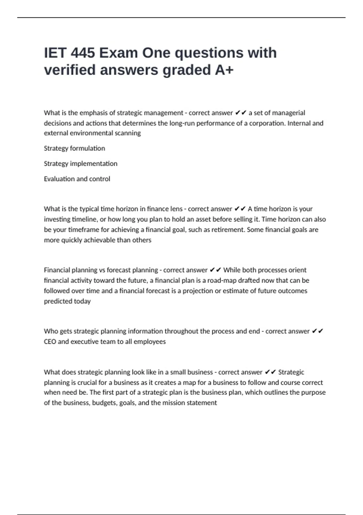 What does strategic planning look like in a small business - correct answer ✔✔ Strategic