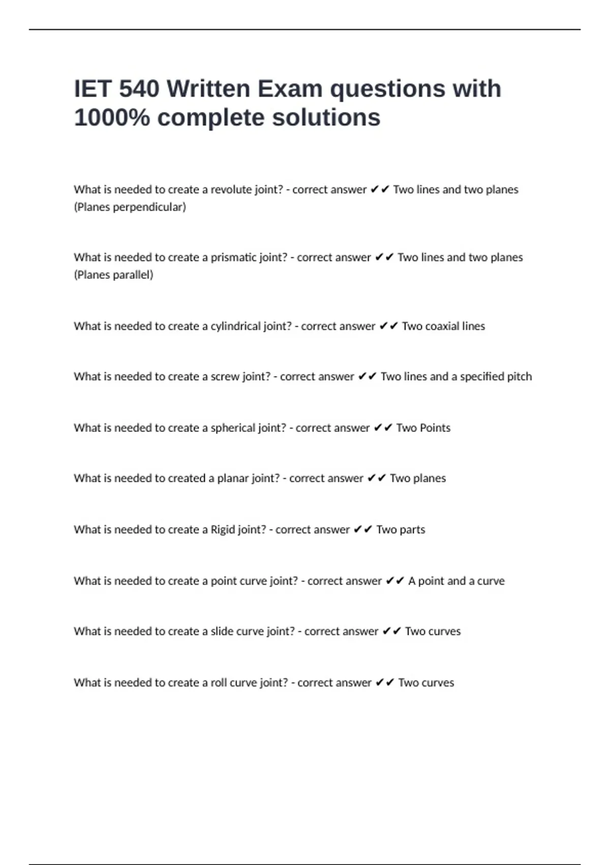 , What is needed to create a point surface joint? - correct answer ✔✔ A point and a surface
