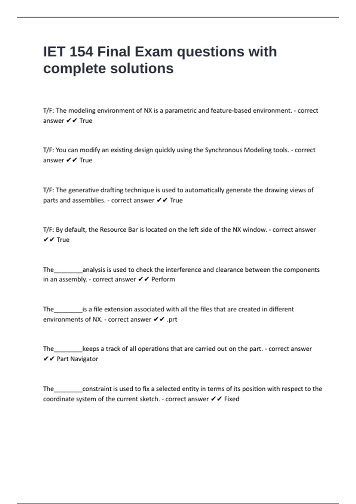 T/F: The files in NX are saved with .prt extension. - correct answer ✔✔ True