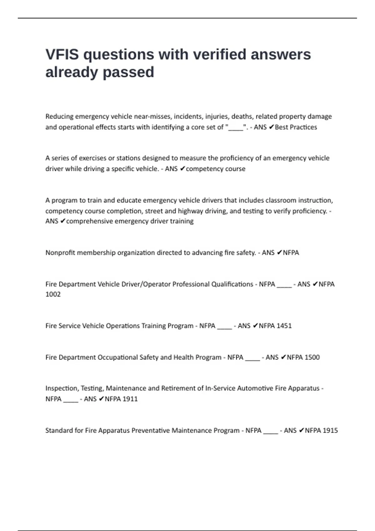 Fire Service Vehicle Operations Training Program - NFPA ____ - ANS ✔NFPA 1451