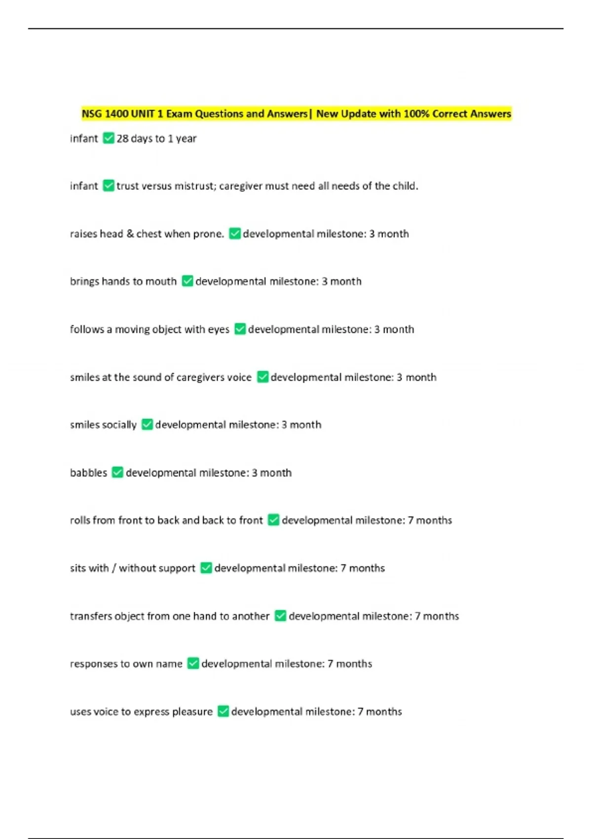 NSG 1400 UNIT 1 Exam Questions and Answers| New Update with 100% Correct Answers