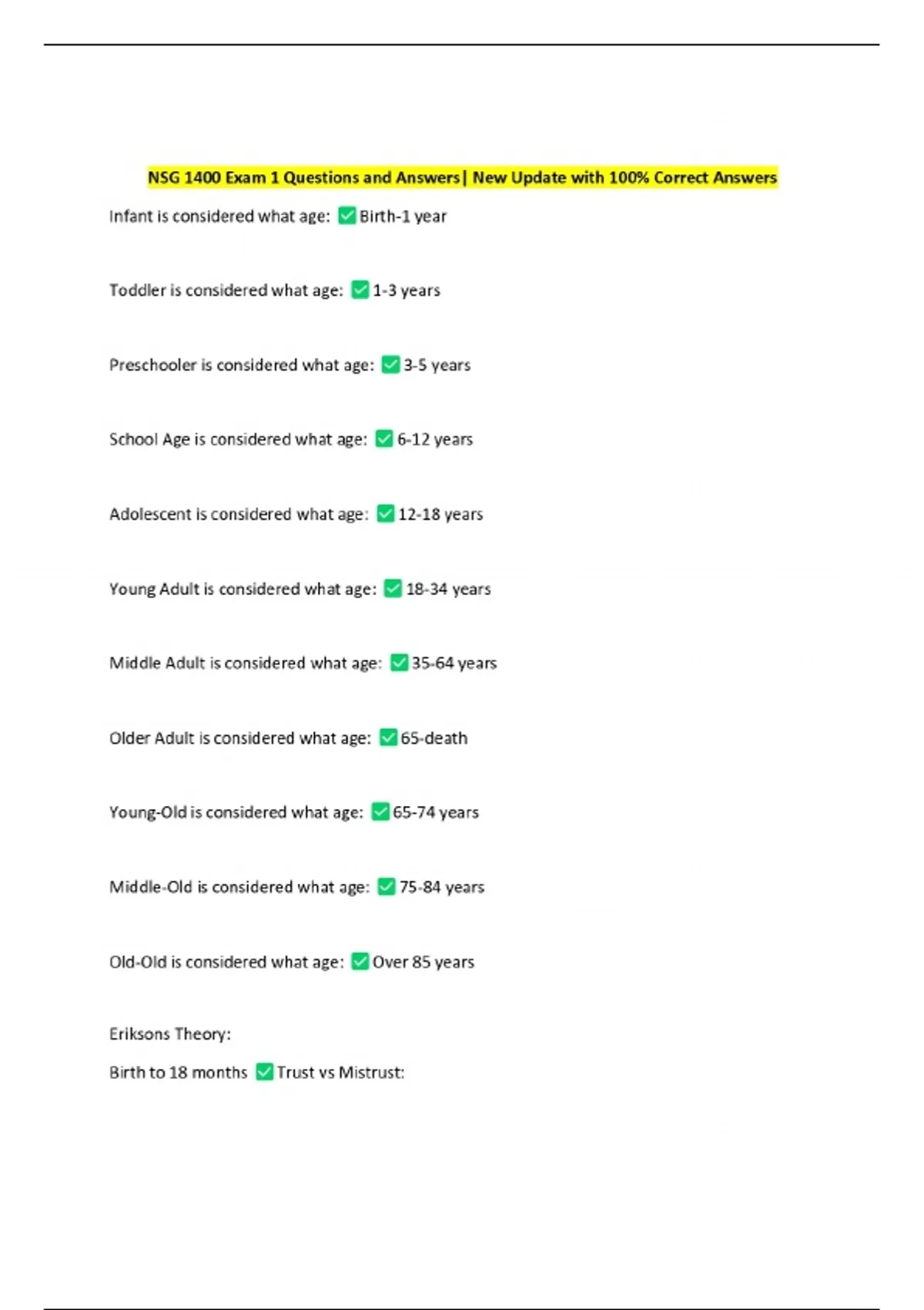 NSG 1400 Exam 1 Questions and Answers| New Update with 100% Correct Answers