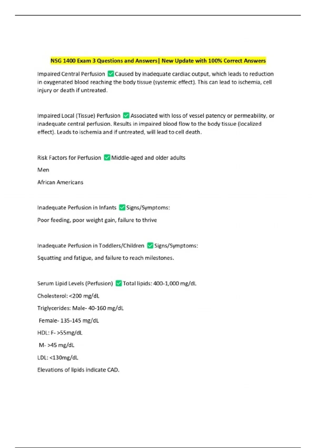 NSG 1400 Exam 3 Questions and Answers| New Update with 100% Correct Answers