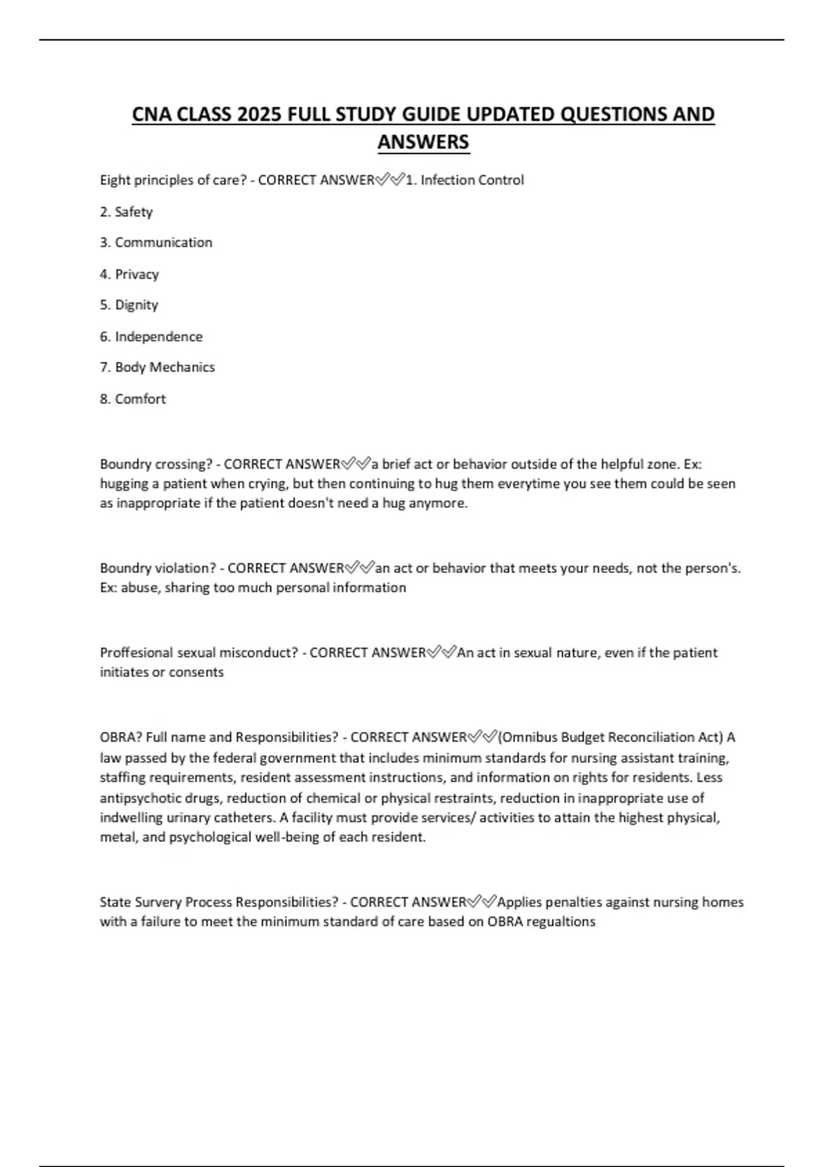 Eight principles of care? - CORRECT ANSWER✅✅1. Infection Control