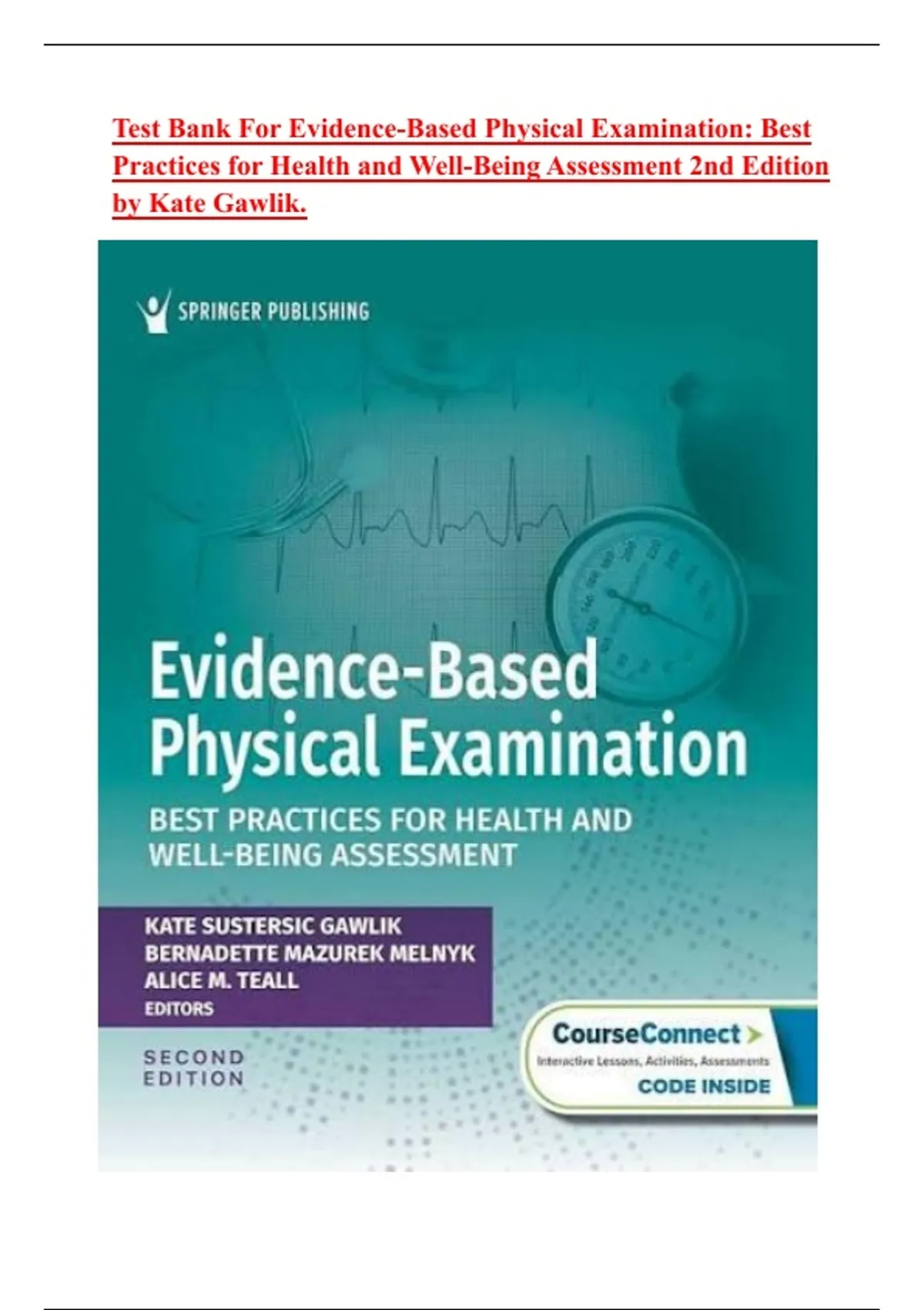 Test Bank For Evidence-Based Physical Examination: Best Practices for Health and Well-Being Assessment 2nd Edition by Kate Gawlik. Latest 2025|Ace your exam