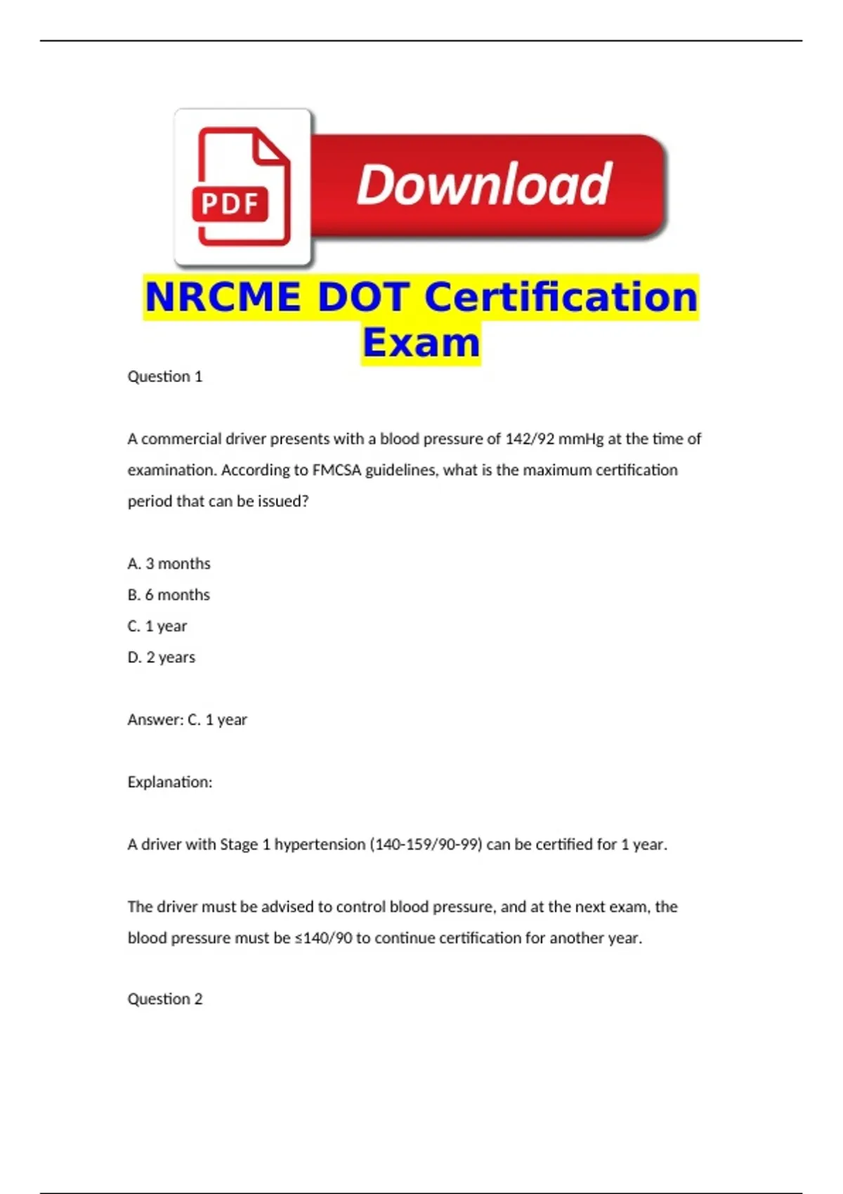 NRCME DOT Certification Exam 2025 | Questions with 100% Correct Answers | Verified | Updated 2025 / 2026
