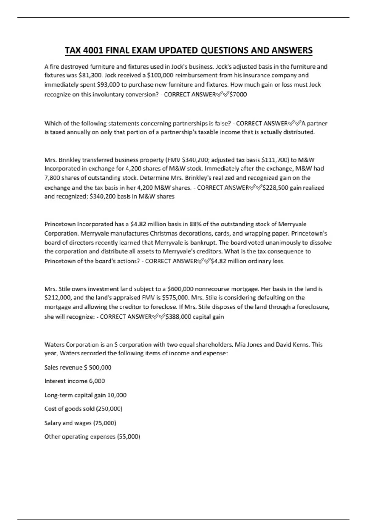 exchange and the tax basis in her 4,200 M&W shares. - CORRECT ANSWER✅✅$228,500 gain realized