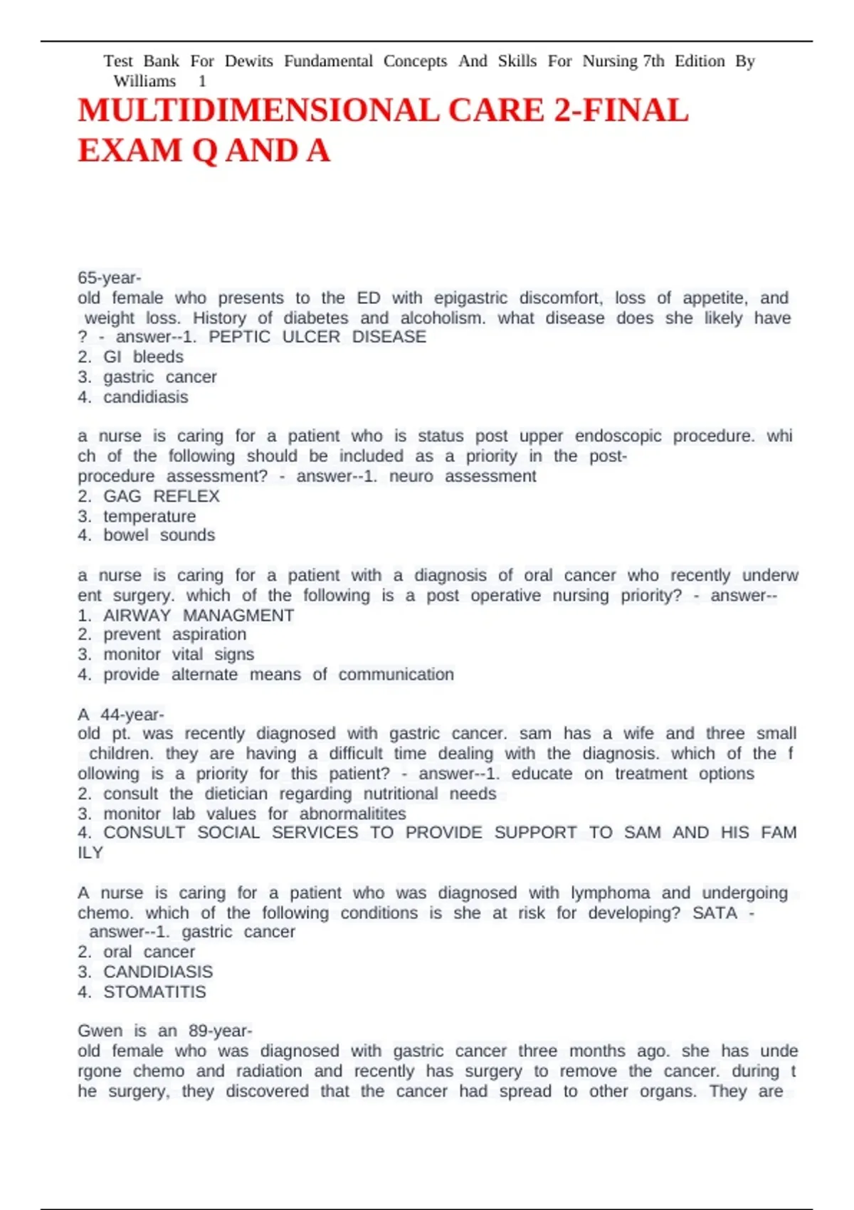 MULTIDIMENSIONAL CARE 2-FINAL EXAM Q AND A