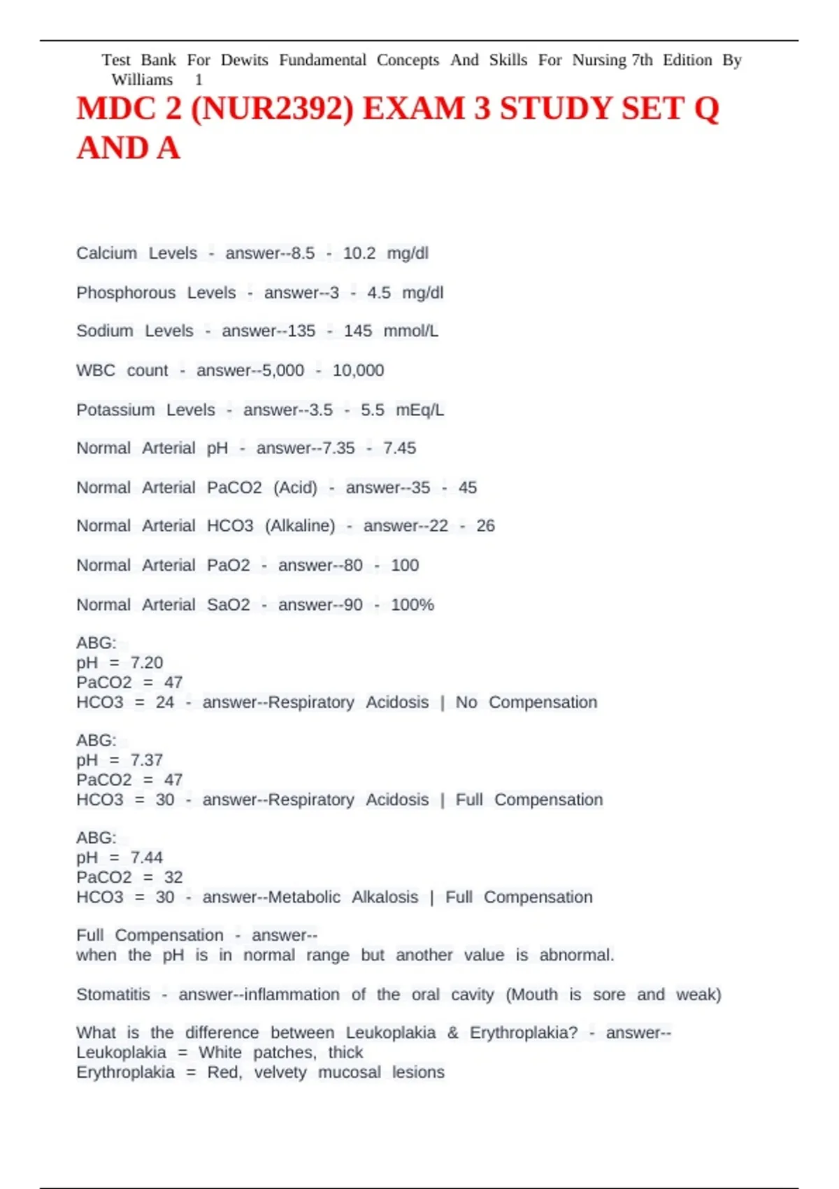 MDC 2 (NUR2392) EXAM 3 STUDY SET Q AND A